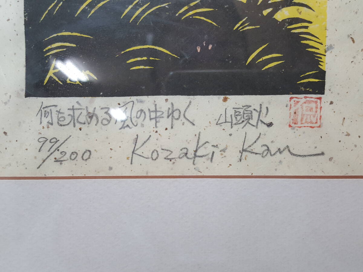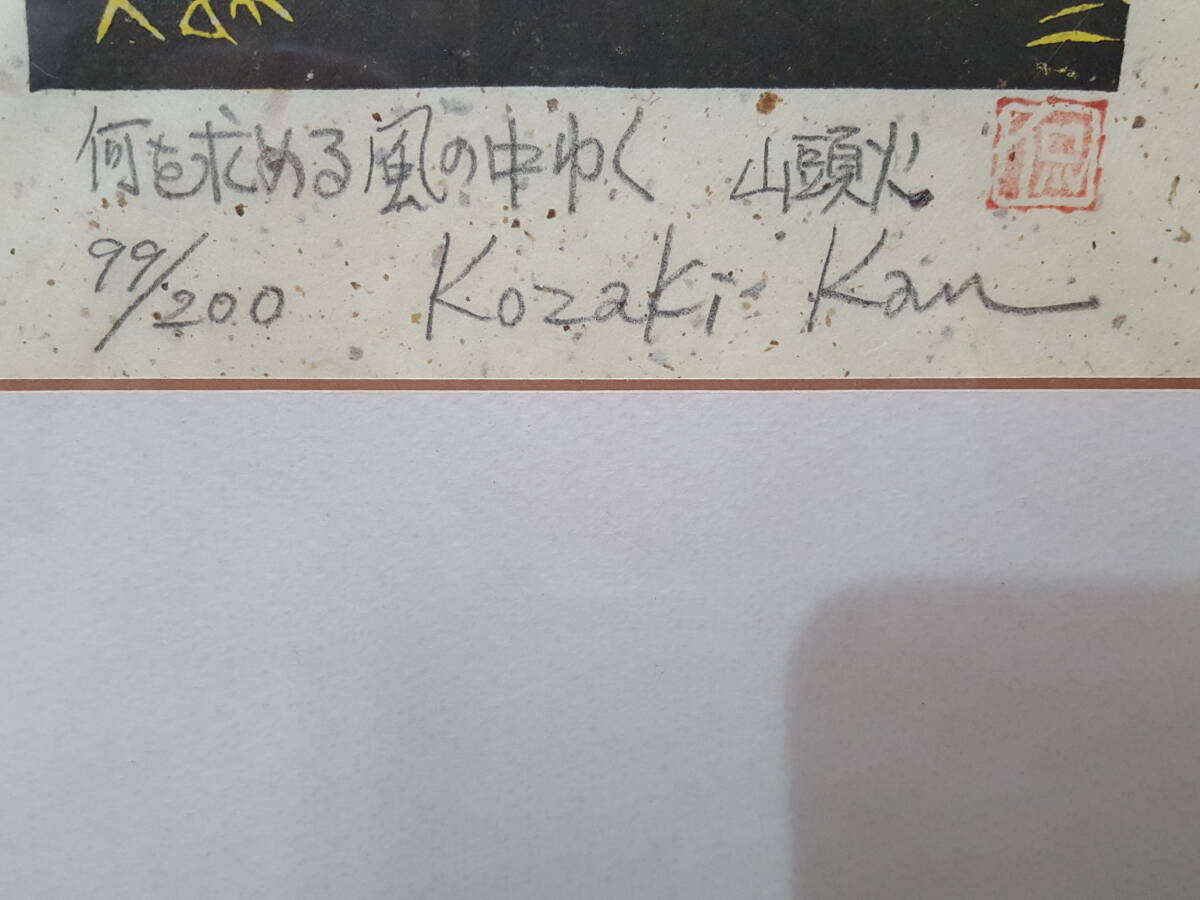 ※佐川急便の場合、離島など別途中継手数料がかかる地域が御座います。 その場合はお振込みを追加でお願いする場合が御座います事、 事前にご了承の程、宜しくお願い致します。 [商品名] 1円スタート 【真作】KOZAKI KAN 小崎侃 作「何を求める風の中ゆく」山頭火 木版画 [サイズ] 額約43×37×2cm 絵約21×15cm [素材] 木製額×アクリル板 [エディションナンバー] 99/200 [状態] 額のマット部分に汚れ、額のフチの所々にキズが御座いますが、 その他は殆ど傷み無い美品です。