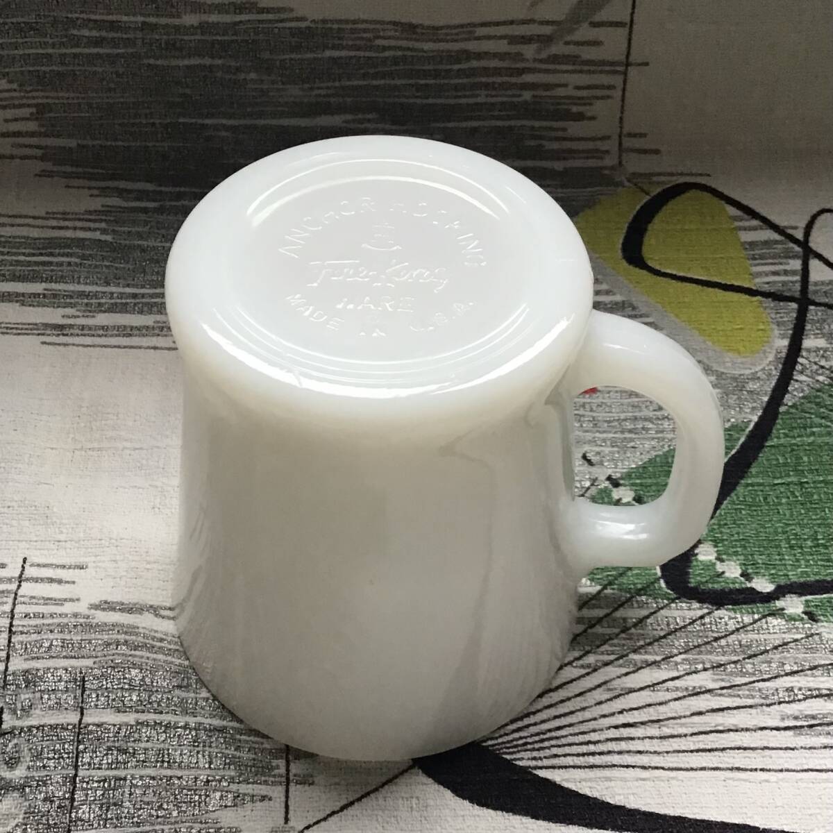 FIRE-KINGの広告マグカップ FIRE-KING の広告マグカップをコレクションする魅力は、そのノスタルジックな雰囲気、ユニークなデザイン、耐久性、そして希少性にあります。これらのマグカップは、思い出やレトロな美学への愛着を通して、過去との繋がりを感じます。 企業のロゴは単なるシンボルではなく、ブランドのビジュアルアイデンティティであり、その歴史、コアバリュー、そして目覚ましい進化を体現しています。象徴的なブランドイメージの領域において、時代を超えて愛され続ける マスコット (エンブレム) があります。それぞれのバージョンは、独特で魅力的なストーリーを物語っています。 ヴィンテージ広告のようなユニークなデザインは、多様なキッチンに美しく溶け込みます。オリジナル FIRE-KING 製品は、耐久性の高さで知られており、特定の広告や企業ロゴが入ったマグカップは、現在ではコレクターの間で高い人気を誇り、希少なものや保存状態の良いものはコレクターの間で非常に人気があり、時には高値で取引されることもあります。 ![]() Jack in the Box 1951 年、ロバート・O・ピーターソンというビジネスマンが、サンディエゴの市内に通じる東西に伸びる主要道路El Cajon Blvd 沿いに『Jack in the Box』ドライブスルーレストランをオープンさせたことから現在は米国とグアムに約 2,200 のクイック サービス レストランを構える、国内有数の人気ファーストフード バーガー チェーンの 1 つです。 Cajon Blvd 沿いの『ジャック イン ザ ボックス』をオープン後、双方向インターコム システムを発明し、インターコムよる注文システムをいち早く導入したドライブスルーのハンバーガースタンドで、タコス、サラダ、朝食メニューなど、さまざまな味覚に応える多彩なメニューを提供するように設計されたドライブスルーに重点を置いた最初の大手チェーンレストランとして知られています。 この革新的な注文システムのアイデアにより、従来のドライブスルーの注文窓口よりもはるかに迅速なサービス提供が可能になりました。そして屋根に置かれたアイコニックなビックリ箱から突き出た巨大なピエロが顧客を見守り、双方向インターコムの上には小さなピエロが置かれ、「お進みください。ジャックがお話しします」というユニークで遊び心のあるサインが掲げられていました。 ![]() 『Jack in the Box』のロゴは時代と共に進化しており、年代が識別出来る収集価値のあるアイテムです。このマグに描かれているこの「びっくり箱」は、1962年~1971年 まで使われていた2代目になりす。 1951 年の開業から愛されてきたピエロの顔はそのままに、当時のデザイン感覚の進化を反映して、複雑なディテールを削ぎ落とし、よりクリーンで現代的な洗練されたミニマルなデザインに仕上げられました。ブランド名は箱自体に大きく表示されました。 「JACK IN THE BOX」のオリジナルコンセプトの遊び心がある特徴的な『ピエロのビックリ箱』が描かれているブランドロゴは、これまで、1st (1951 1962)、2nd (1962 -1971)と抽象化されたピエロデザイン4th (1977 1985) の3種類だけです。(その他の時代はロゴ文字のみになります。) ![]() > ・個人所有/自宅保存 ・優れたヴィンテージ状態で、60年以上が経過した現在でも普段使いに毎日楽しんで頂けます。 ・総合評価 : ☆☆☆☆☆☆☆☆☆★ (9.5) ・製品の希少価値とコンディション、広告グラフィックの希少価値と認知度等の総合評価 ・レア度 : ☆☆☆☆☆☆☆☆☆★ VHTF (Very Hard To Find / 非常に入手困難) コンディション ・★★★★★★★★★★ (Mint : 9.5) 使用感がなく未使用同等 ・経年による使用感はありますが、ひび割れ、欠け、などはダメージはありません。 ※製造工程上で発生するミルクガラス製品が持つ特有の ホワイトスポット、フリーバイト、ヘアライン、ペイントロス、色ムラ、着色汚れなどの小さなものは、一般的に Anchor Hocking Fire King 食器の特性と判断されているため、コンディションに含まれておりません。 ・工業製品ではありますが、当時の製造環境はほぼ手作りであったため、同じ製品であっても工場や生産ロットによって重さやガラスの厚み、時には色や形に個体差が生じます。それがヴィンテージのファイヤーキング耐熱食器の魅力でもあります。 ・状態は十分にチェックしておりますが、万が一見落としがありましたらご容赦ください。 ■ 詳細 ・サイズ : W 約 10.3 cm x H 約 8.8 cm ・容量 : 240 ml ・製造期間 : 1951 - 1961 年 初期 ・刻印 : OVEN ・Fire-King・WARE・MADE IN U.S.A ![]() >