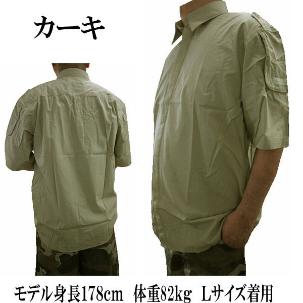 TWENTYFIVE (トゥエンティーファイブ)半袖シャツ BD283 カ-キ(L)です。 ■素材 コットン100% ■サイズ 身幅約55cm 着丈約64cm 着丈約82cm ■特徴 フロントは比翼仕立てでボタンが隠れますので、シンプルな着回しに便利な1枚です。 両肩にボタン付きで、左そでにZIPポケット付き。 | ||||||