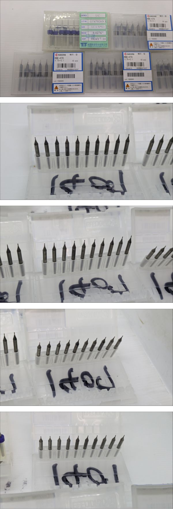 | ●●最後まで読んで下さい●●納得した上でご入札してください●● ●大型機械用のアカウントは**こ ち ら**です。 ●他のドリルを購入しますと同梱で安くすることは可能です。 ●塩尻市から発送します。 ●発送料金は入札ボタン付近にあり、沖縄、北海道、離島以外一律です。 ●離島発送はできない場所がございますので、事前にお問い合わせください。 ●発送日は月、水、金、日です。急ぎの場合はご連絡をお願いします。 ------------------------------------------------------------------------------------------- ●メーカー:TCT/京セラ ●シリーズ:UC/RBE-070 ●サ イ ズ :0.7×8.0/0.7×2.1 ●シャンク径:約Φ3.17mm ●ドリル外径:Φ0.7mm ●本 数:50本 ●使用済み、未使用品が混在してます。 ●途方は専門知識がございません。 ●在庫品のため、若干ほこりなどがあります。 ●素人測定のため、測定誤差があります。 ●箱付きです。 ●現状のまま発送します。 ●発送はゆうパケット便です。 ------------------------------------------------------------------------------------------- ●下の方にも画像がございます。※たまに写真の枚数が不足していて画像がない場合があります。 ●落札後、ご指定配達の時間帯がある場合はあらかじめご連絡してください。 | |||