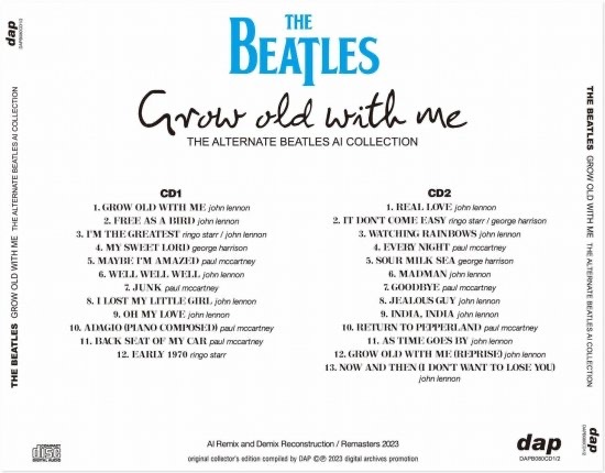 2023年最新のAIテクノロジーによって完成させた最後の新曲「ナウ・アンド・ゼン」が話題となっているザ・ビートルズ。近年ピーター・ジャクソンによる『GET BACK』で発揮された音源解析によるデミックスを駆使した様々なリミックスが可能となっている中でオリジナル音源を元にしたマルチトラックから再構築されたリミックス音源が注目されています。70年解散以降のソロや未発表曲をビートルズ・バージョンとして再現したものでバーチャル生成とは異なりメイン・ヴォーカルはオリジナルをフィーチャーしつつギター、ベース、ドラムスやコーラスを再構築してビートルズ・バージョンとして仕立て上げています。第1弾となった『ナウ・アンド・ゼン~ビートルズAIコレクション』に続く第2弾となる今回は「ナウ・アンド・ゼン」と同じくアンソロジー企画で新曲候補とされていた「グロウ・オールド・ウィズ・ミー」をタイトルにしたコンセプト・アルバムでジョンとリンゴによる「アイム・ザ・グレイテスト」やジョージとリンゴによる「明日への願い」といったハイブリッド・バージョンからビートルズとしての未発表曲である「ウォッチング・レインボウズ」「サワー・ミルク・シー」「マッドマン」さらに「フリー・アズ・ア・バード」「リアル・ラブ」から話題の「ナウ・アンド・ゼン」まですべて第1弾とは別音源となるより完成度の高いリミックス音源が集められています。マニアも唸る入念なリミックスによる新音源ベスト・アルバムとして楽しめる内容となっており更なる進化を遂げザ・ビートルズ夢の共演を実現させた最新AI音源コレクションとして注目の最新コレクターズ・アイテムです。