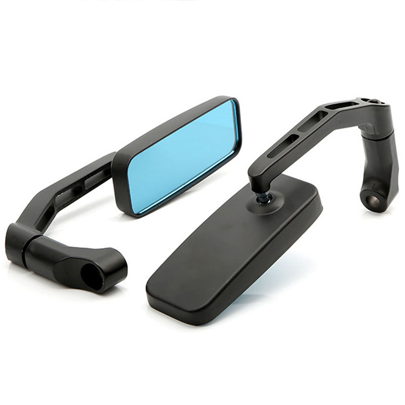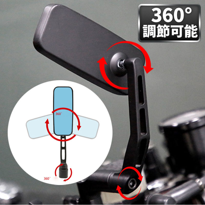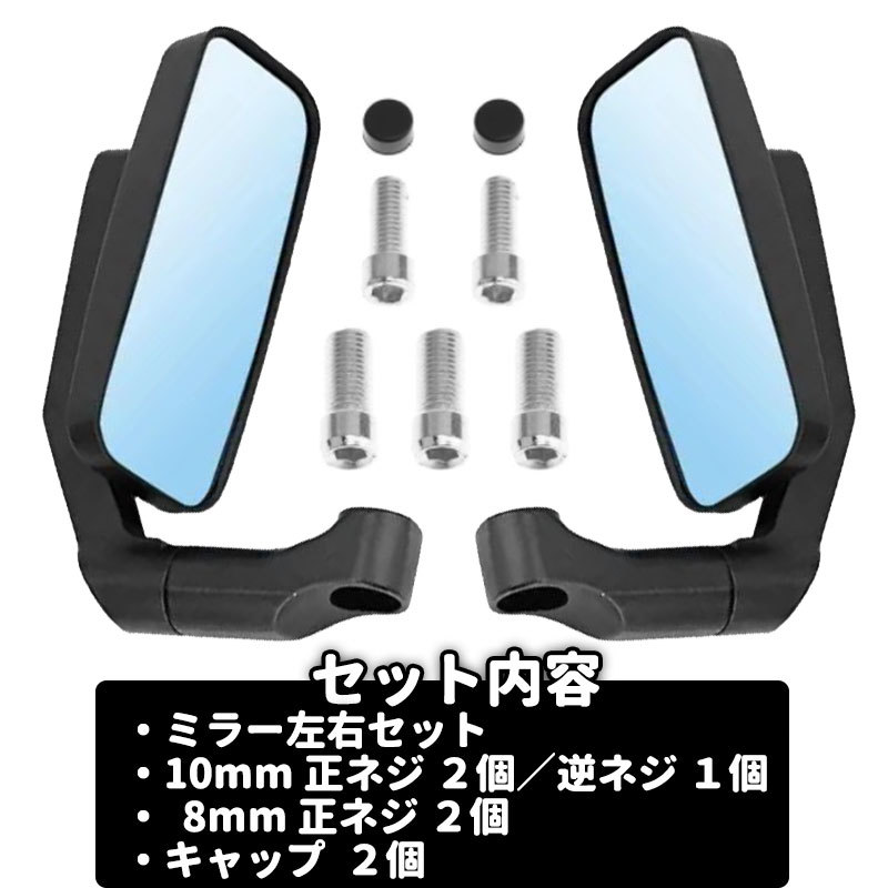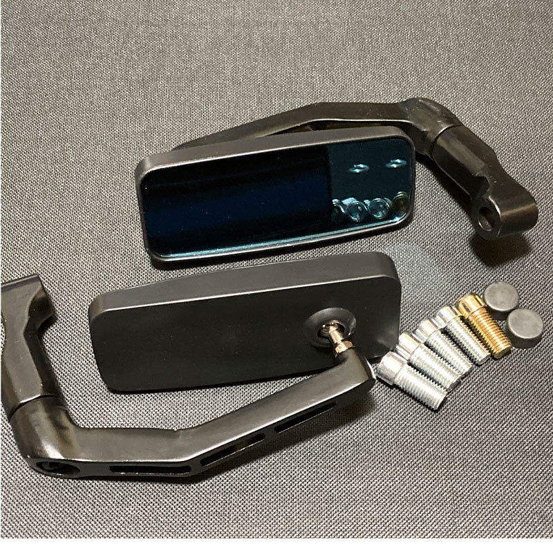 バイク ミラー スクエア 型 汎用 原付 左右セット 10mm 8mm 逆ネジ 正ネジ 反射防止 ブルー バックミラー アルミ製 ホリゾンタル ブラック | |||