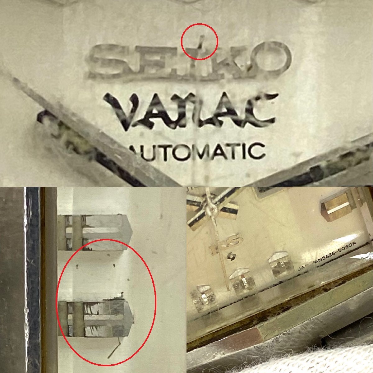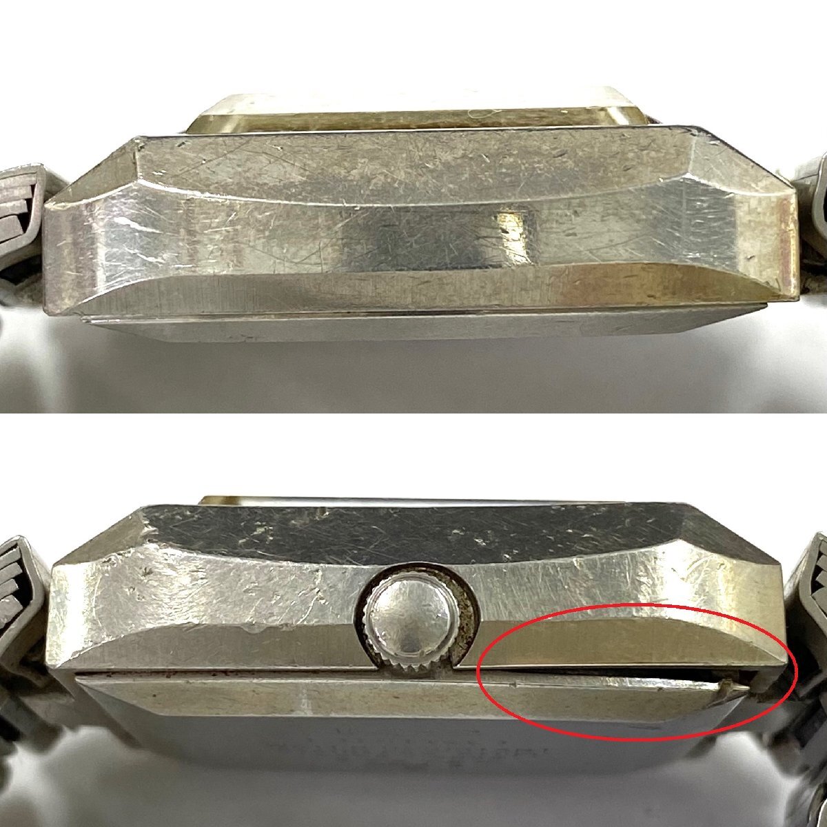 ・全体的な目立つ擦れや傷、打痕、くすみ、裏蓋に若干の浮き、溝や隙間/内側にくすみ汚れ