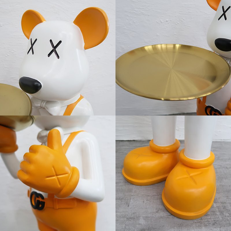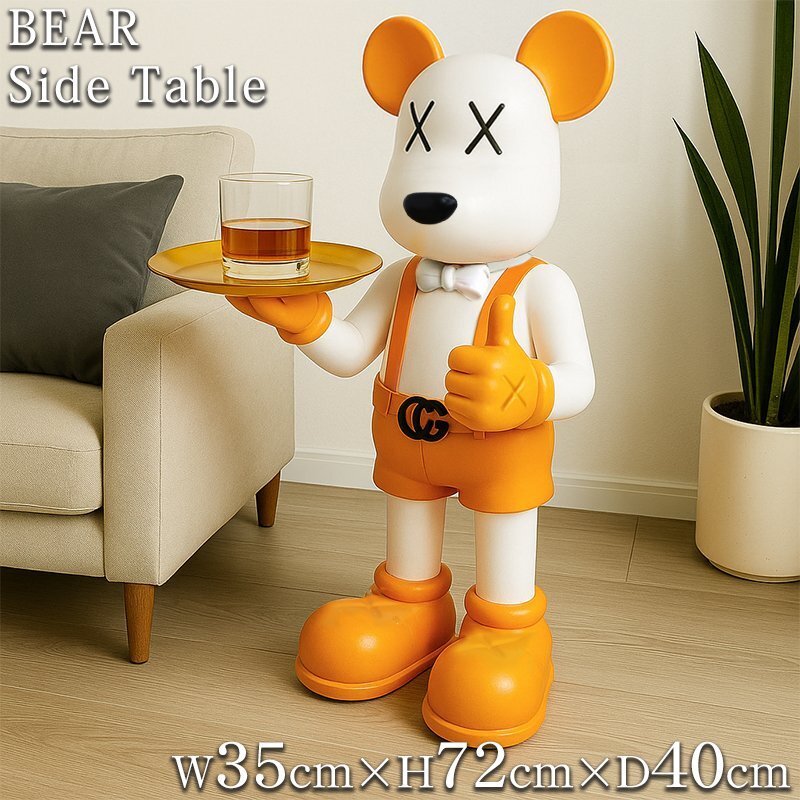 ![]() 遊び心と高級感を融合させた、唯一無二のサイドテーブルが登場! 存在感抜群のクマ型オブジェは、スタイリッシュなインテリアとしても主役級の逸品。高品質な樹脂素材で成形されており、滑らかなフォルムと艶のある質感が空間に洗練された印象を与えます! トレーはドリンク・小物・アクセサリーなどの置き場としても機能的。 手に持つ姿はまるで執事のようで、来客時の話題にもなること間違いなし! お部屋のアクセントとして、リビング・エントランス・書斎・店舗ディスプレイなど幅広いシーンにおすすめのマルチサイドテーブルです。 届いてスグに使えるカンタン組立 トレーをクマの手に両面テープで接着して乗せるだけ! 複雑な作業は必要ないので、慣れてない方でもカンタンに組み立てることが出来ます。 サイズ(約):縦72cm、横35cm、奥行き40cm トレーサイズ(約):横26.5cm、奥行26.5cm カラー:イエロー×ゴールド 素材 本体:ABS樹脂 トレー:ステンレス 重量(約):6.1kg ※この商品はお客様の方で簡単な組み立てが必要になります。 ※こちらの商品は BE@RBRICK / ベアブリック や KAWS / カウズ の商品ではありません。 オリジナルデザインになります。 |