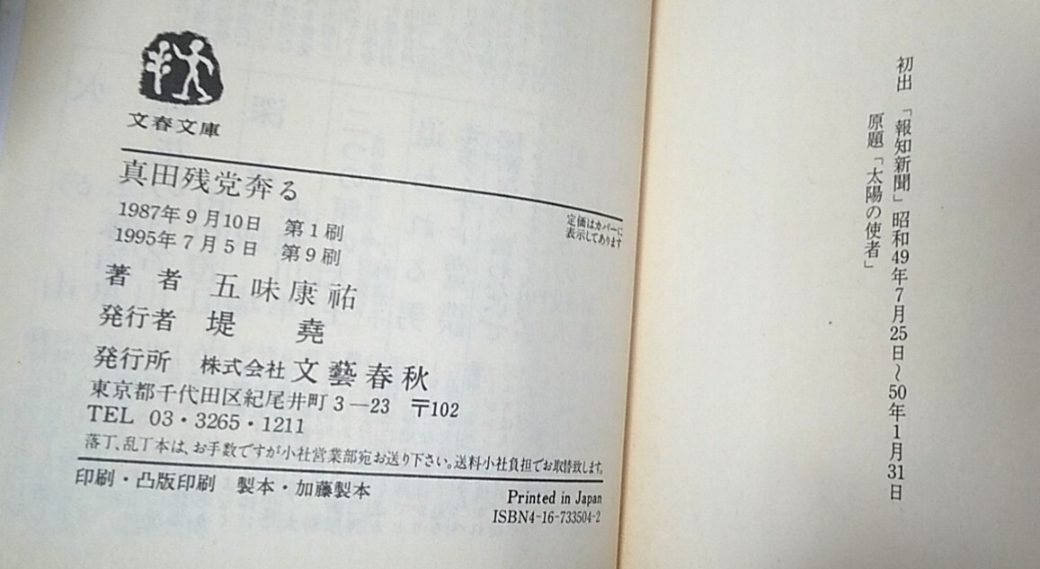 剣豪を描いた小説が有名な五味康祐さん| 出价者 | 信用 | 价格 | 时间 |
