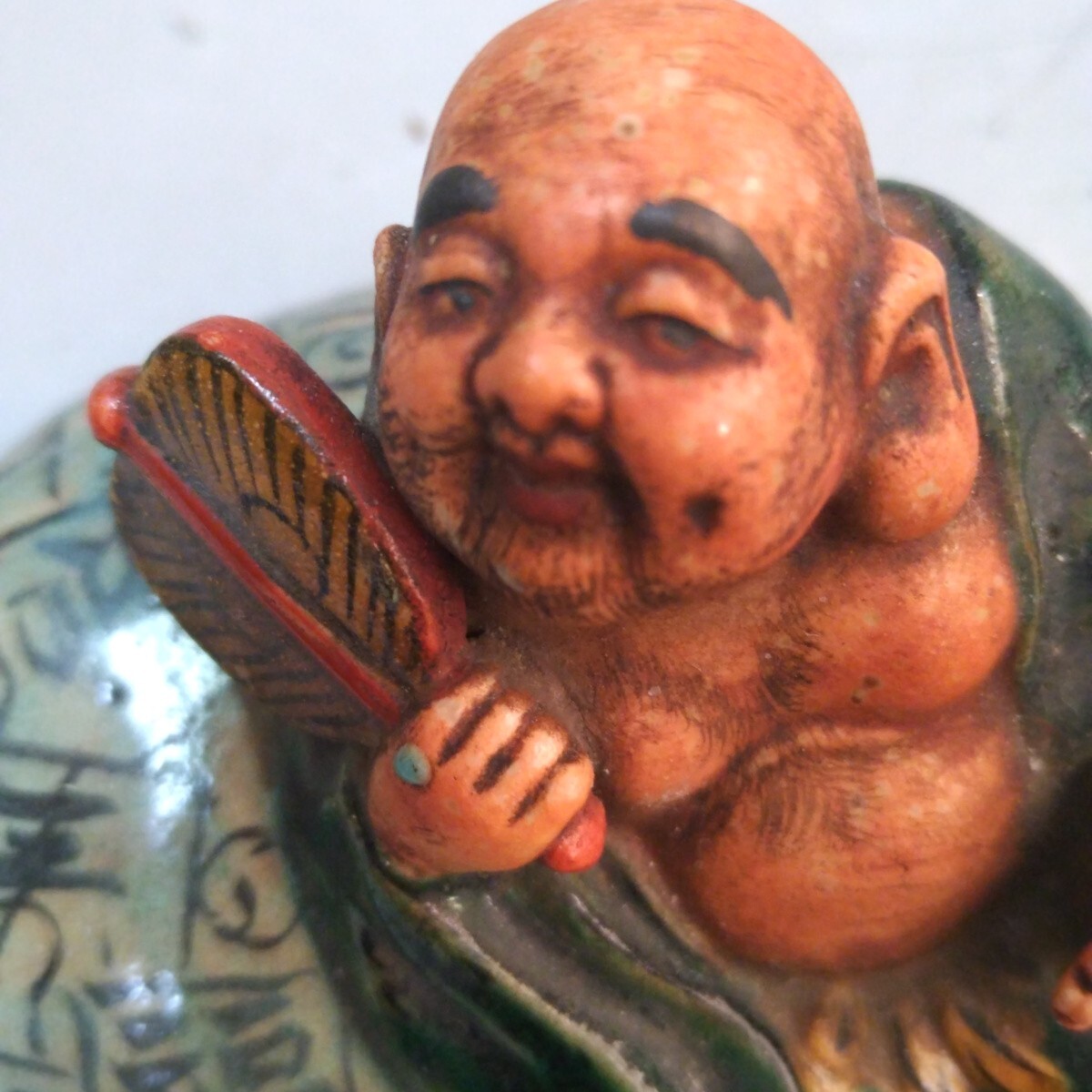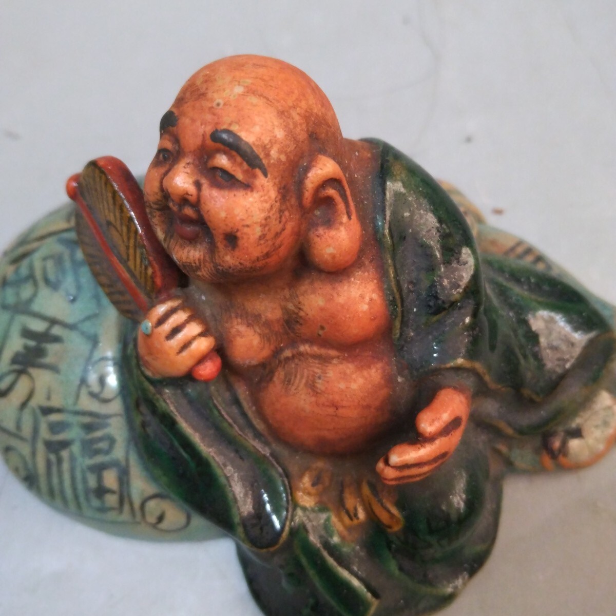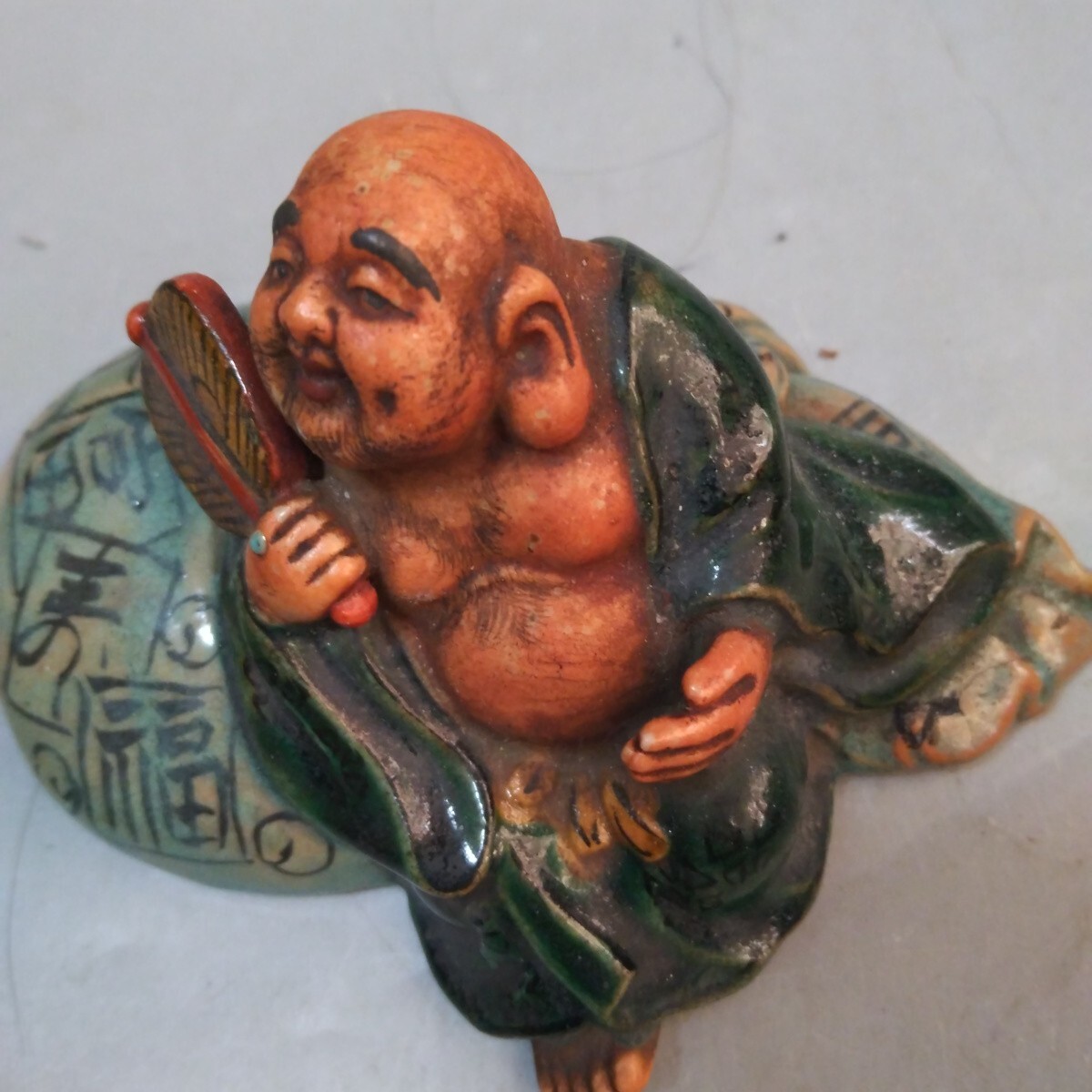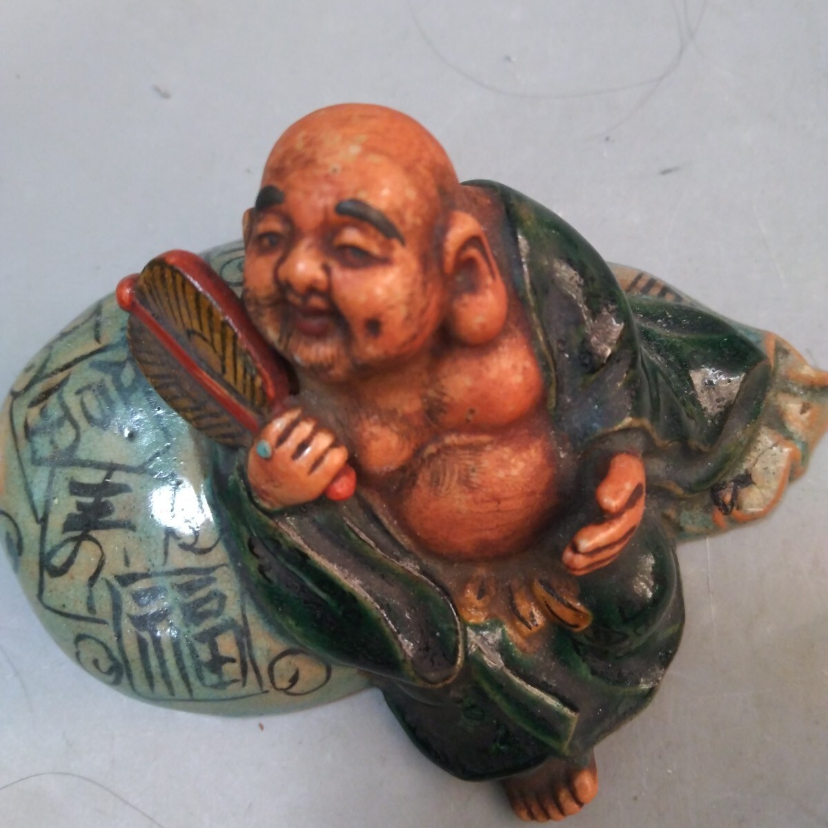 布袋の表情が非常によく書けて大変素晴らしいハイクラスのものです。飾っても味わい深い魅力あふれるものです。長さ12、5センチ高台径12、5センチ高さ8センチ