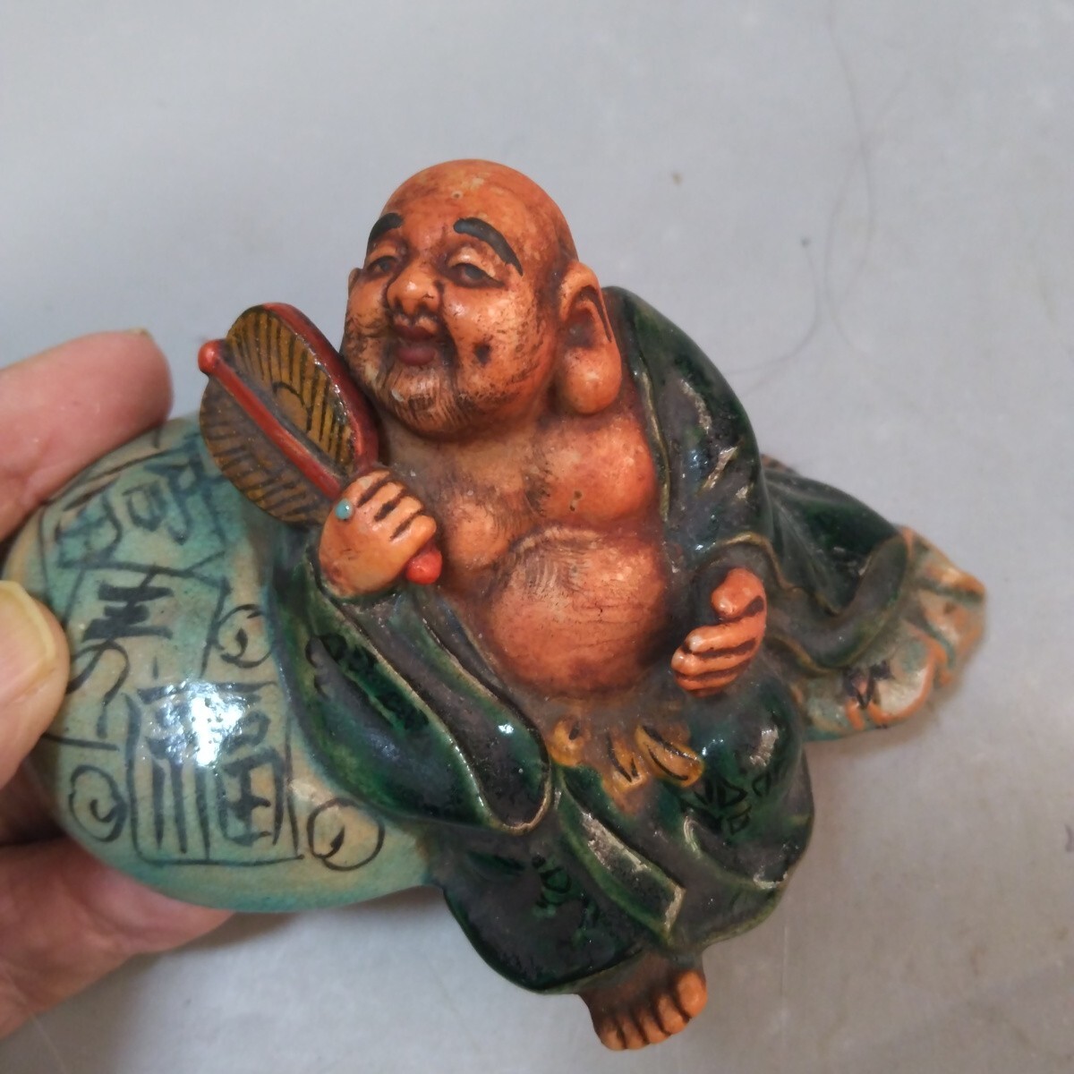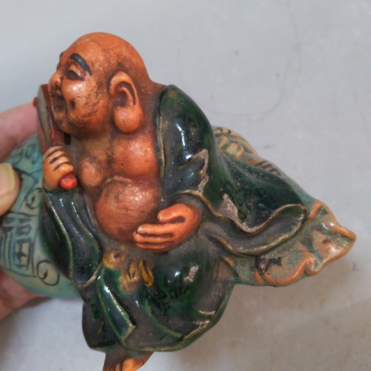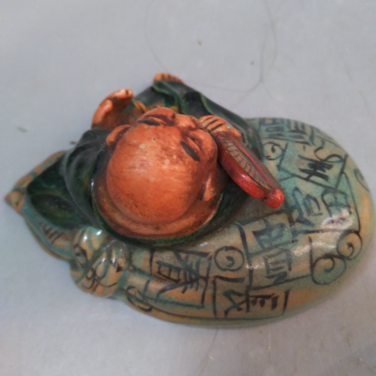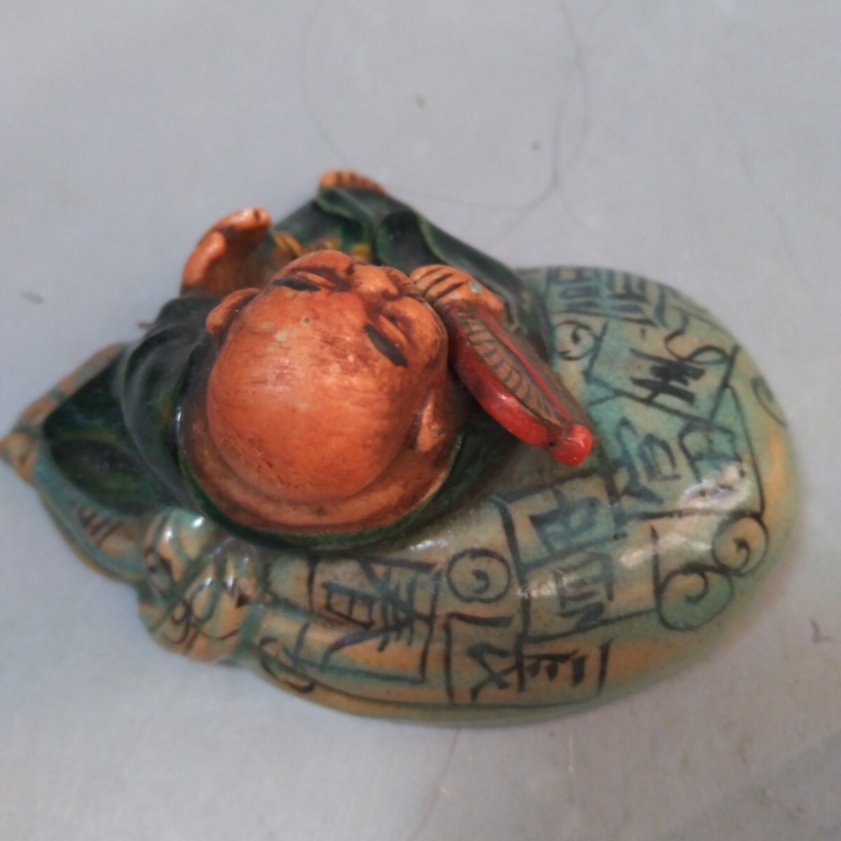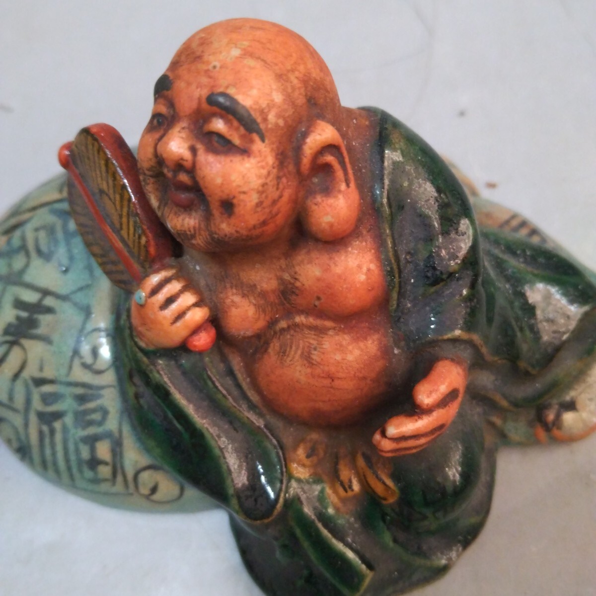 布袋の表情が非常によく書けて大変素晴らしいハイクラスのものです。飾っても味わい深い魅力あふれるものです。長さ12、5センチ高台径12、5センチ高さ8センチ