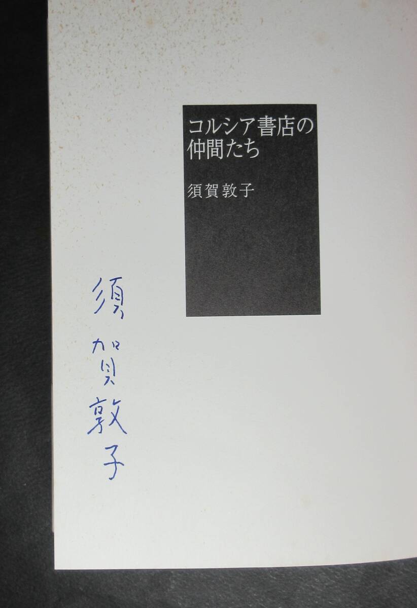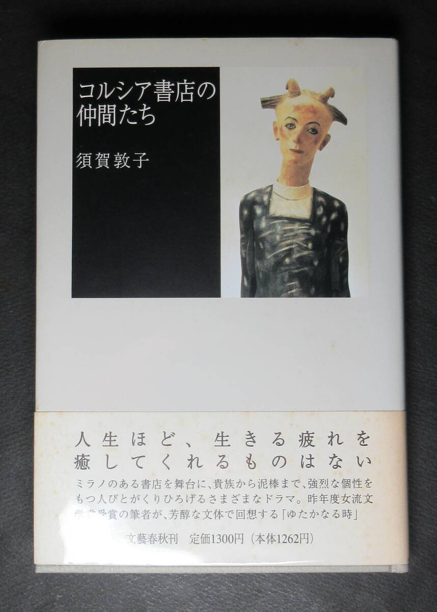 ●須賀敦子/署名入り、「コルシア書店の仲間たち」文藝春秋刊、装釘:宮川一郎、表紙写真彫刻:船越桂、1992(平成4)年、初版、カバー、帯付、約19.5×14cm