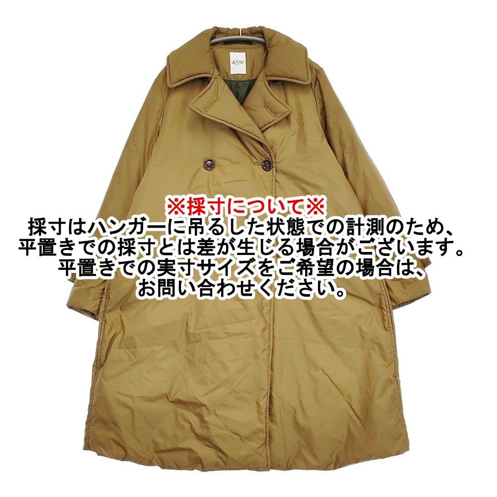 | 実寸サイズ | 肩幅:約41.5cm 着丈:約107cm 身幅:約59.5cm 袖丈:約62cm ※採寸画像がある商品はハンガーに吊るした状態での計測のため、平置きでの採寸とは差が生じる場合がございます。平置きでの実寸サイズをご希望の場合は、ご購入前に必ずご質問ください。 ※記載以外のサイズが合わないことを理由とした返品はできませんので、 記載部分以外で実寸サイズの気になる箇所があれば必ず購入前にご質問ください。 |