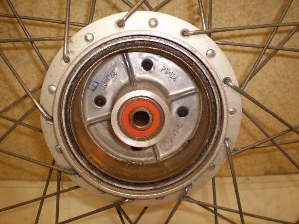 | ■商品説明■ J17×1.40のアラヤ製スチールリムにスポークのホイールです。 ややメッキの劣化と小サビありますが、打ち傷や大きな傷なく、歪みもありません。 計測時、1.5mm程度の振れありました。 実走テスト時、違和感ありませんでした。 リアですので走行には問題ないと思います。 ハブベアリングも摩耗は軽度です。 ブレーキドラム内に段摩耗ありません。 スポークも緩みや欠落ありません。 タイヤは2.50/17でダンロップ製5分山が付いています。 ------------------------------------------------------------------------------------- C0 アイラブモーター YB-1 F5B-9100 「51713007」「」 |