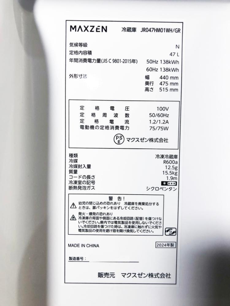 ★引き取りの大歓迎!! ご本人様が直接引取の場合、2,000円値引きます!! 是非お越しください♪ ※大変申し訳ございませんが、キャッシュバックは落札金額が5,000円以下の場合は発生致しません。 ★お取り置きOK!★ 3ヶ月間までは、無料でお取り置きできます! もしそれ以上の期間をご希望の方は、事前にご相談ください♪ 全国送料無料★2024年製★極上超美品 中古★MAXZEN 47L 右開き 整理しやすいドアポケットコンパクト★1ドア冷蔵庫【JR047HM01WH-GR】FTP8 ※写真に写っているものが全てとなります。 ◆一通りの動作確認を行っており、特に問題なく稼働しております。 ◆他にも出品しており、ご覧いただければわかりますが、細かすぎるかもしれませんが、私が気が付いたキズ等に関して、できる限りアップ写真を掲載しております。こちらの商品に関しては、私が見る限りで申し訳ございませんが、傷や汚れ等なく、全体的にはとても綺麗で、極上超美品だと思います。 ※但し、中古品の為、私の気づかないキズ・汚れ等あるかもしれませんので、気になる方はご遠慮ください。 是非、ご検討をお願いします。 【商品説明】 ■使いやすいコンパクトサイズ 幅440×奥行475×高さ515mmでちょっとした空間に収まる使いやすいサイズ感 ■整理しやすいドアポケット 2Lのペットボトルや牛乳など高さがある飲み物と、細かい小物を分けて収納できる便利なポケット。 ■温度調節ダイヤル 内容量に合わせて冷蔵庫と冷凍室の冷却温度を段階調節できます。 ■耐熱仕様の天面 耐熱温度100℃の天面で、電子レンジなどすっきり収納。 ■調節脚 本体が水平になるように高さを調節できます。 ■静音設計 生活環境に置いても音が気にならない。運転音約26dB。 ※騒音値の目安 20dB:木の葉のふれあう音・30dB:郊外の深夜やささやき声 型番名JR047HM01 外形寸法W440 × D475 × H515mm 重量15.5kg 定格内容積47L(冷蔵室 : 47L) 電圧100V~( 50 / 60Hz ) 定格消費電力75W / 75W ( 50 / 60Hz ) 年間消費電力量138kWh / 年 ( 50 / 60Hz 共通) 駆動音26dB ※コンプレッサー動作安定時 電源コード長約1.9m 天板耐荷重30kg 冷却方式直冷式(庫内温度調整ダイヤル付き) 冷凍庫の記号フォースター 冷媒ノンフロン R600a 使用環境周辺温度:5~35℃、周辺湿度:20~80%(結露なきこと) 製造年:2024年 詳しくはこちら↓ https://maxzen.jp/product/jr047hm01/ ◆動作保証しておりますので、商品到着後3日以内に落札後の商品お取引画面から、動作不良等の内容をメッセージ連絡頂きましたら、初期不良対応は致します。但し、電源が入らない、全く稼働しない致命的な不具合に限ります。 ◆簡易清掃を行っております。 当方としては、清掃を行っておりますが、あえて簡易清掃と言わさせていただきます。 神経質な方や、新品同等のレベルをお求めの方、気になる方はご遠慮ください。 ◆その他、素人なりに慎重に確認したつもりですが、中古品の為、私の気づかない傷や汚れ等あるかもしれません。 専門的・神経質な細かな点までの対応はできませんので、基本的にノークレーム・ノーリターンでお願いします。 ※下記内容を最後まで、必ずお読み下さい。 ご入札・落札の際は、ご了承頂いたものとみなします。 注意事項★☆★☆★☆★☆★☆★☆★☆★☆★☆★☆★☆★☆★☆★☆ ●システム改定に伴い、「 受取連絡 」が非常に重要となりますので、商品到着後24時間以内に受取連絡された方のみ、初期不良対応・保証対象とさせていただきます。 ●私としてで申し訳ございませんが、できる限り誠意ある対応を心がけているつもりですが、顔の見れないお取引が故に色々な方がおり、また人それぞれ感性など異なりますので、ところどころ、あえてと記載させて頂いております。 ●初期不良対応・保証に関して、お届け先へ商品到着後、3日以内が保証対象となります。 ●商品が届いたご住所で動作確認等行ってください。移動しますと保証対象外になります。 ●万が一、商品に不具合等がございましたら、落札商品お取引画面から具体的な不具合等の内容をメッセージして下さい。商品到着後、3日以内メッセージを頂けていない場合は、保証対象外となりますので、必ずお願いいたします。 ●家電に関しては、あえて、電源が入らない・全く稼働しないなどの致命的な不具合、家具類など電気を使わないものは、その物として成り立たない物に限らさせていただきます。 ●動作確認・状態確認が終わるまで、梱包材・運送会社の伝票など必ず保管してください。保管されていない場合、初期不良対応・保証ができなくなる場合がございます。 ●運送事故の恐れがあった場合、所有権がお客様側に移っておりますので、お客様にて運送会社とのご対応をしていただくことになりますが、穏やかなお話合いができる方に関しては、不慣れかと思いますので、こちらもできる限りのご協力をさせていただきます。 ●当方は、運送会社が起こしたトラブル・遅延に関しては、一切の責任を負いません。 ●商品に不具合等あって