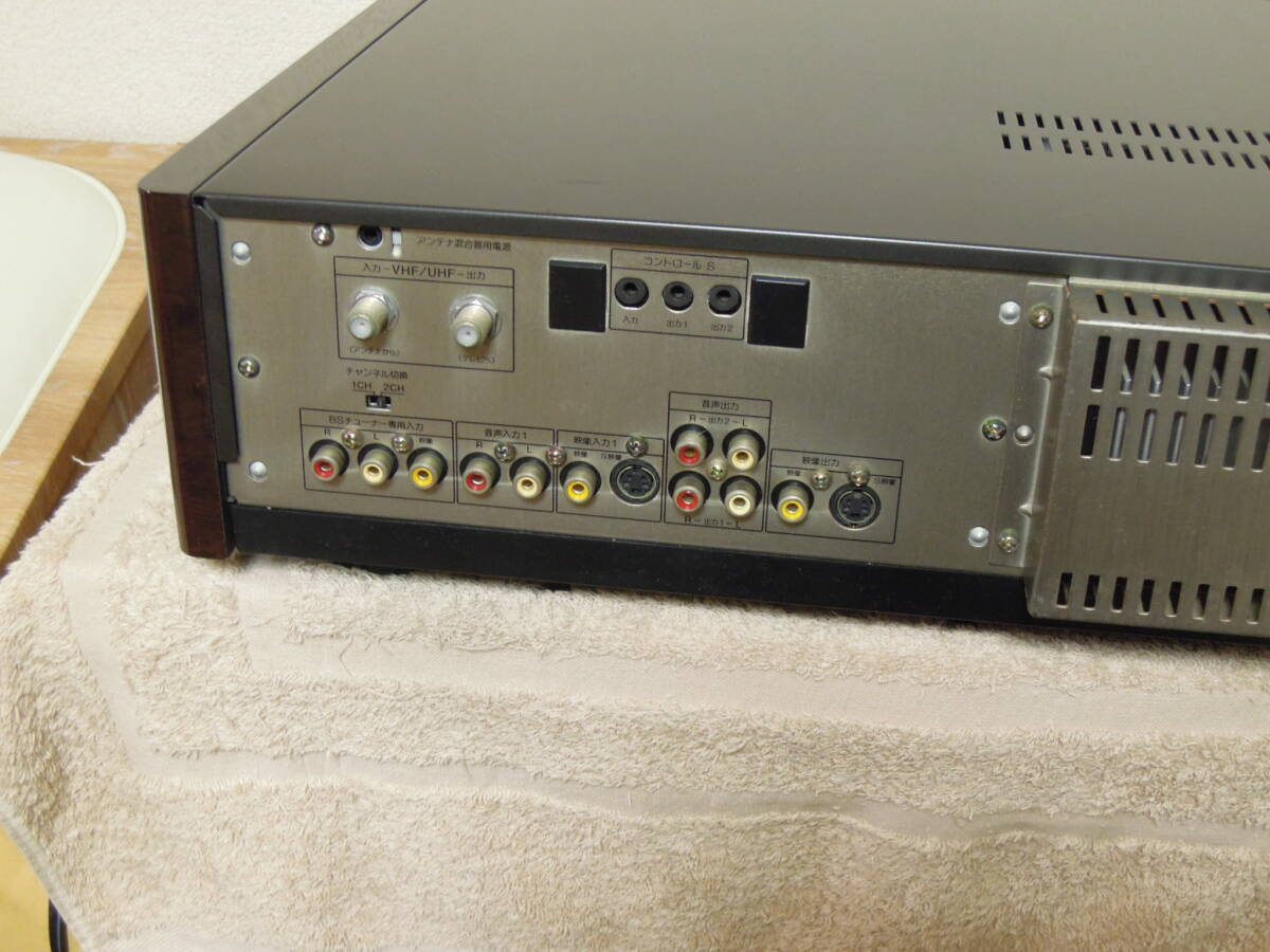録画済テープの再生はとても綺麗で安定した画質です。メタルテープの再生も解像感があり歳月を感じさせない映像です。他の機能も異常なく作動しフライングイレースヘットやスイングシャトル搭載で編集やつなぎ録りも奇麗に行えます。外観は小さな擦り傷がありますが年代を考慮すると奇麗だと思います。専用リモコンRMT-V8000が付属します。TVチューナー及録画はアナログ放送終了によりテストしていません。到着時の動作不良は返品に対応させて頂きますが、それ以外は古い製品ですノークレームでお願いします。