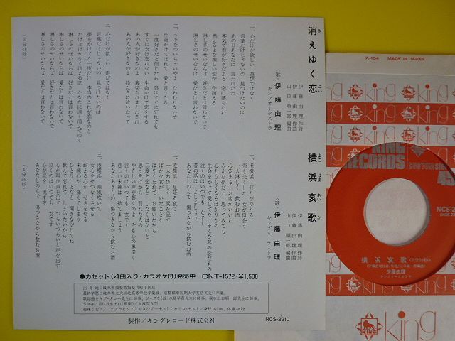 EP◆伊藤由理/消えゆく恋/横浜哀歌 NCS-2310【直筆サイン入り】◆編曲:山口順一郎,委託盤,自主制作盤,自主製作盤,自主盤 マイナー歌謡 7