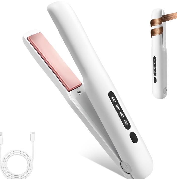 ヘアアイロン コードレス 2way カール/ストレート コードレスヘアアイロン Type-C充電 19mm 軽量 20秒速熱 140℃~200℃ 4段階温度調整 自動電源OFF 誤起動防止ロック 無線 ミニ 小型 持ち運び便利 2in1 男女兼用 日本語説明書付き 家庭/旅行/出張/通勤用 初心者向け (ホワイト)