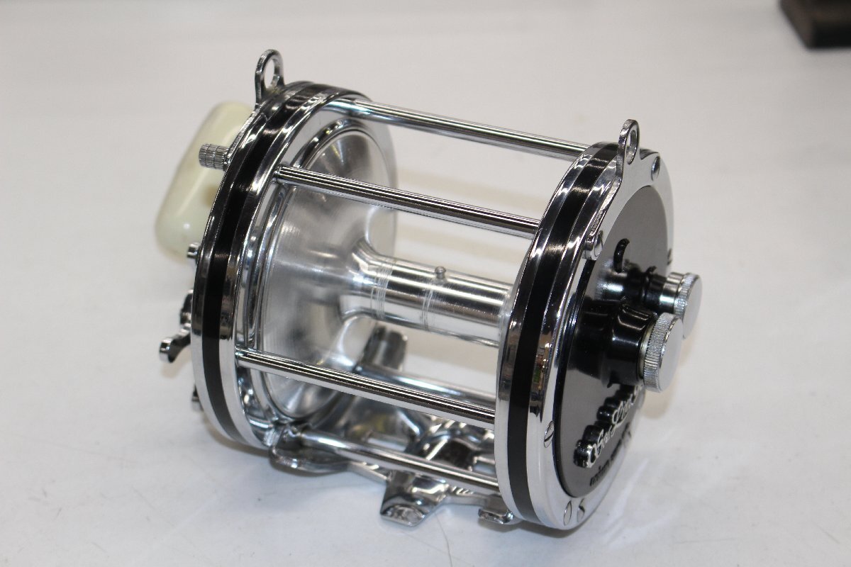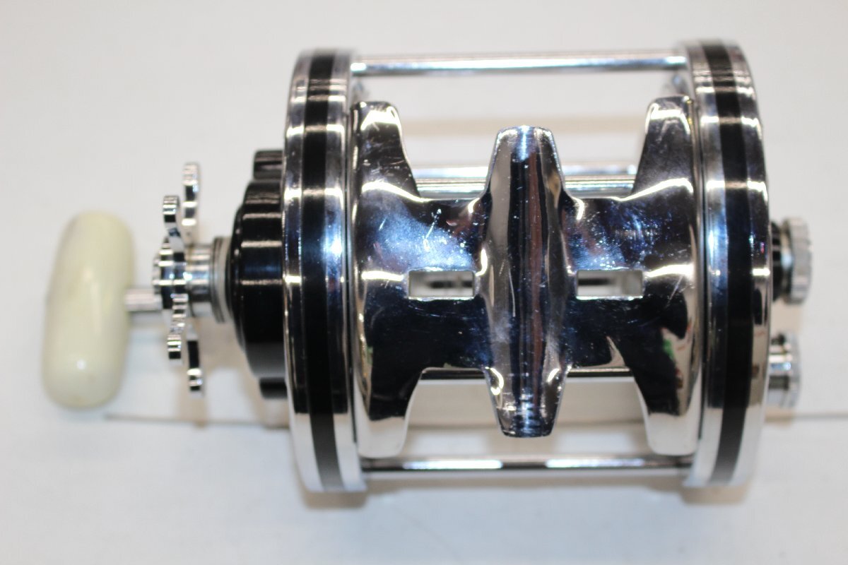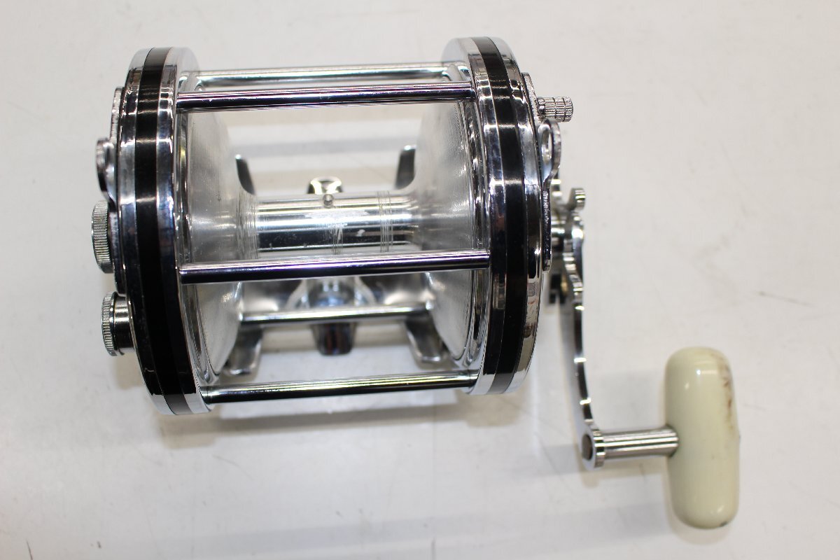 古い型式のリールに伴い、リールスペックの詳細は不明です。 古い型式のリールとなりますが、外観は小キズ、線キズが点在し、スプールのライン痕が見られます。年式の割には比較的綺麗な状態の品です。(画像参照) 金属パーツにサビ、塩のダメージは見られません。 回転は良好、クラッチ、ドラグの可動状態も問題ありません。 ※ノークレーム、ノーリターンにて宜しくお願い致します。 ※画像と商品説明を御確認の上、入札お願い致します。 | |||||||||||||||||||||||||||||||||||||
