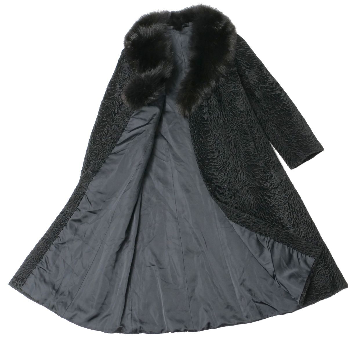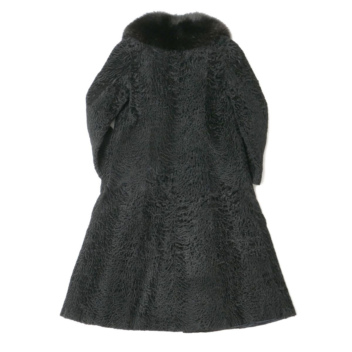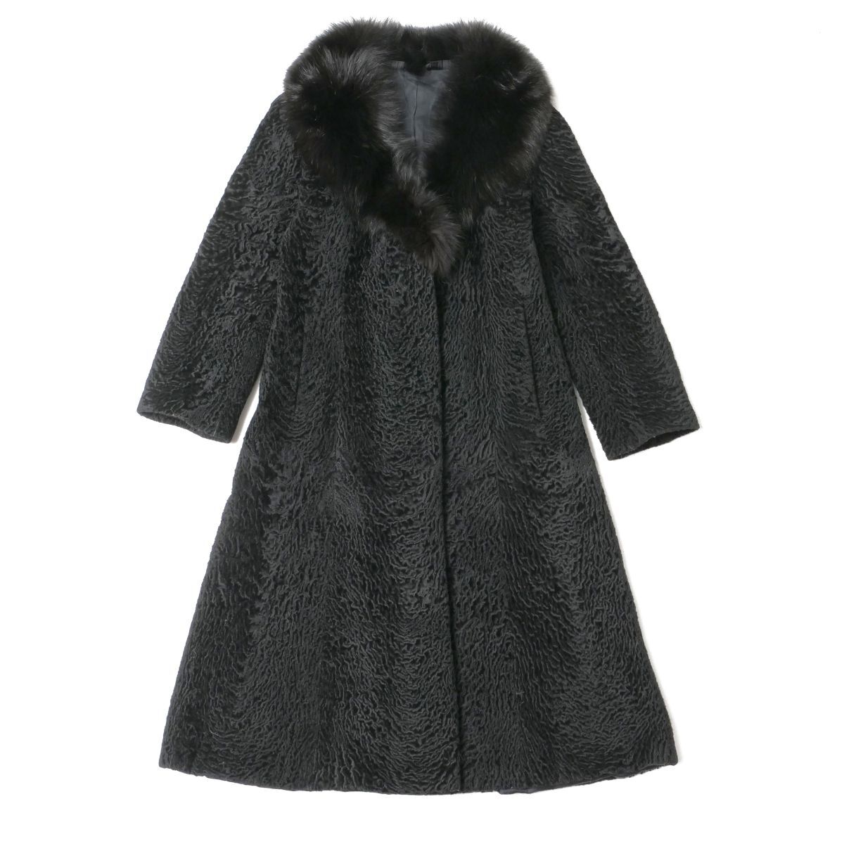 | GS5753◇カラクールラム × フォックス ファーコート ロングコート 毛皮コート ブラック系 サイズ11 着丈約107cm | |||