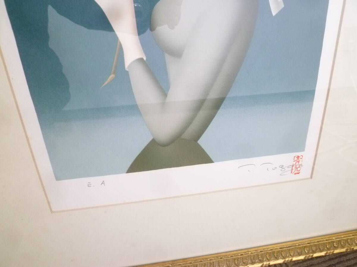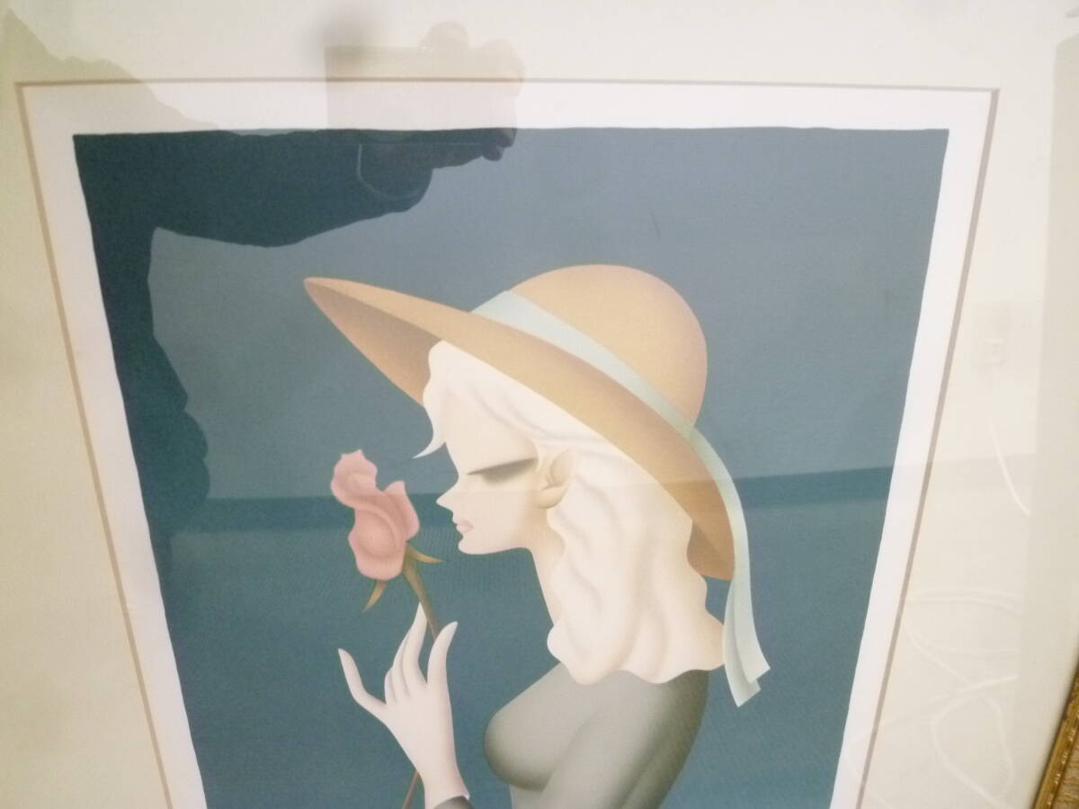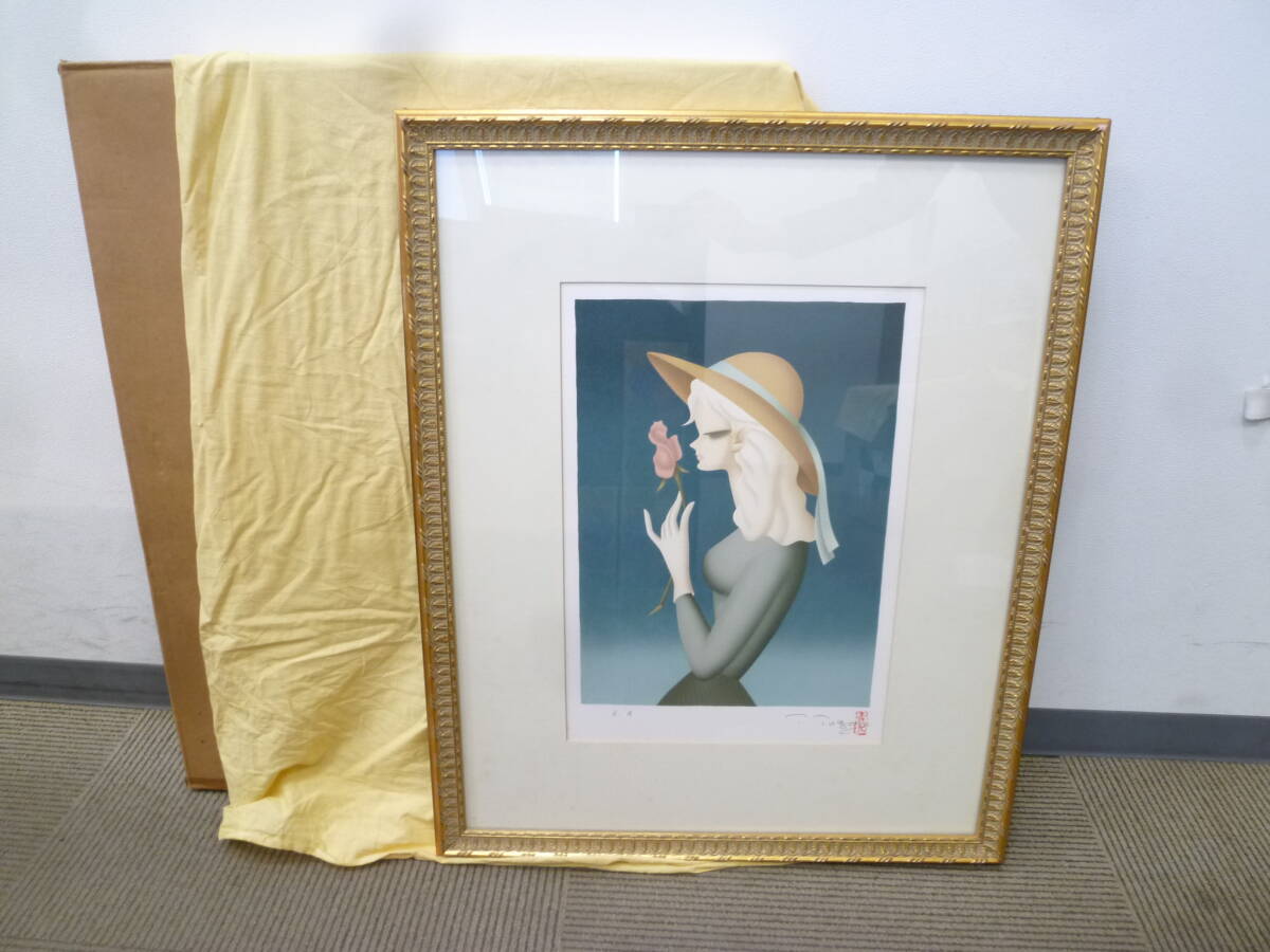 | #42205 【保管品】 複製画 東郷青児 リトグラフ 薔薇一輪 一輪のバラ 薔薇を持つ女性 東郷たまみサイン JPA REPRO刻印 日本版画協会 | ||