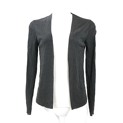 | シルバーラメが入ったエレガントなカーディガン☆ボタンの無いデザインでさらっと羽織っていただけます。ボトムスやスタイルを問わずに着まわせる1着でお薦めです♪華やかさを少しプラスしたい時にも◎ |