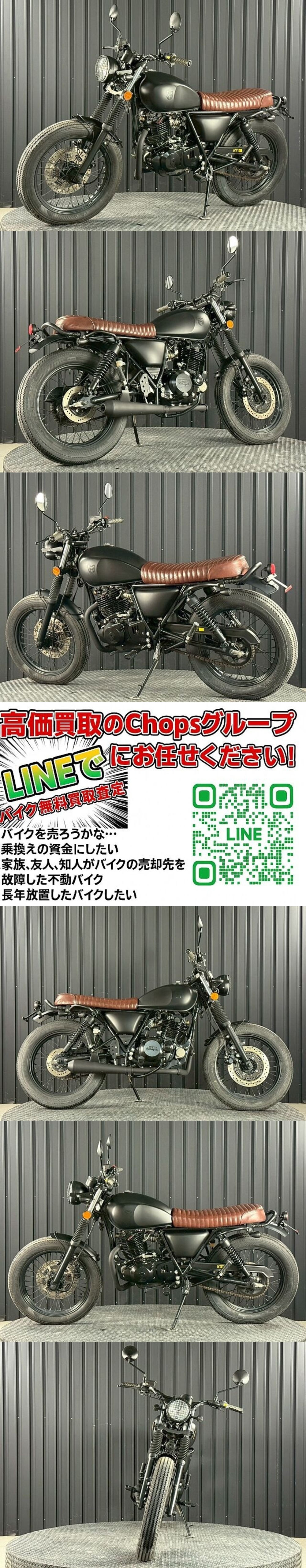 | ★こちらの車両は整備付き車両の為、店頭でのご契約をお願いいたします★ 弊社グループ店で正規販売店がございますので、メンテナンス等につきましてはご安心ください。 こちらの車両は当社販売店舗または保管倉庫において、直接販売をしています。 また、GOOBIKE等でも展示・併売しております。 ご落札やご連絡をいただいた時点で売約済み・商談中となっている場合もございます。 お手数かとは思いますが、必ず商品説明欄をお読み頂き「電話・LINEにて在庫確認」 又は 「ご来店にて現車確認」をお願い致します。 オークションページの画像以外にも詳細な画像や小キズ等の画像を掲載しております。 【Goobikeでの掲載ページはこちら】 車両状態のお問い合わせ、ご購入の相談、オートローンのご相談等につきましては販売店までお問い合わせください。 〒569-1051 大阪府高槻市原2232-3 TEL:072-689-5000 Email:chopstakatsuki@gmail.com 営業時間:10:30~19:00 定休日:第1.3.5火曜日、毎週水曜日 より詳細な写真や動画は、LINEからもお送り出来ますので、お友達登録後、こちらのページの情報をお知らせください。 ID:@898gdlsq IDで追加できない方は、以下URLから追加できます。 https://lin.ee/PXRViuG 【Goobikeでの掲載ページはこちら】 ●現車確認は随時受け付けております。現車を確認せずにご購入いただいた場合、掲載していない不具合含め如何なるクレームも承ることはできません。あしからずご了承くださいませ。 ●現車確認ご希望の方は、まずは直接販売店までお問い合わせください。 ★で落札・お取引きいただく場合★ 落札いただいたとしても、店頭で商談中・売約済みの場合やバイクショップ様・業者様にて売約の場合もあります。店舗での販売を優先しています。 入札前には必ず在庫の確認をお願いします。 ※ご返品・ご返金対応などでキャンセルなってしまった場合、稀に商品代金以外の費用を請求する方もおられますが、 いかなる場合も工賃、かかった手間代、用意した部品代、交通費や高速代・燃料代など 商品代以外の代金は一切ご負担できません。 ※トラブル防止のためにも何卒ご理解とご協力の程よろしくお願い申し上げます※ |