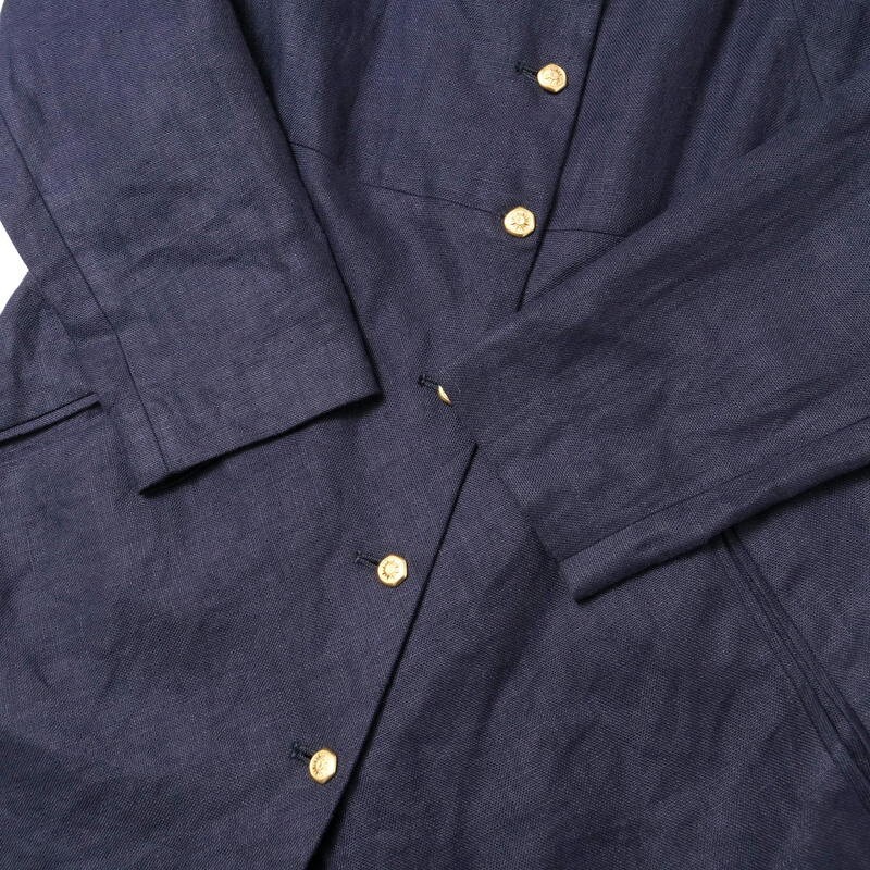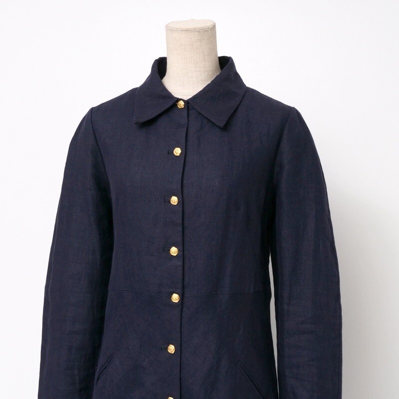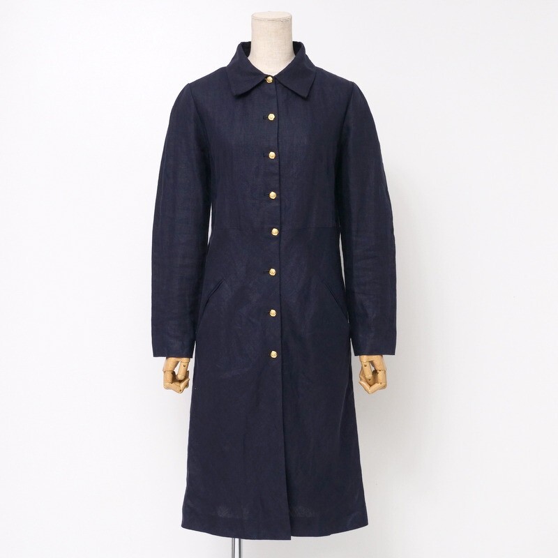 | MI3401□ジュンコシマダ/49AV.junko shimada 総リネン 麻 金ボタン ロングコート スプリングコート レディース サイズ40 ネイビー系 | |||