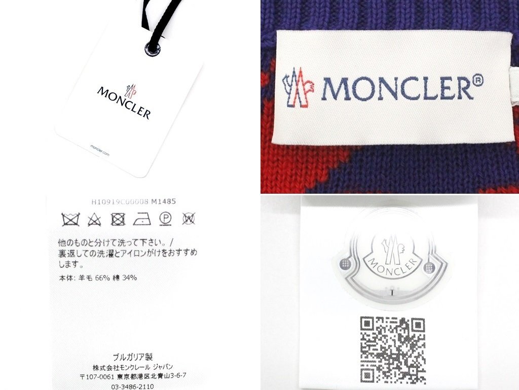 17万新品本物◆モンクレールジャパン◆L◆Mモノグラム柄×アームロゴ ニットセーター紺赤 ウールコットン