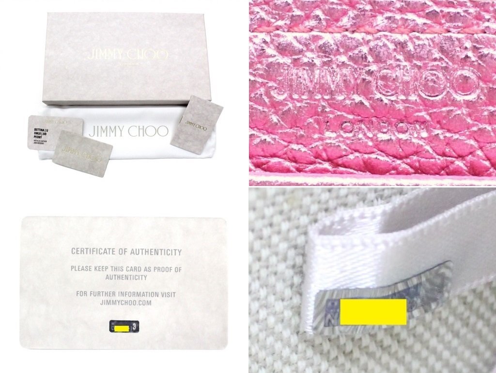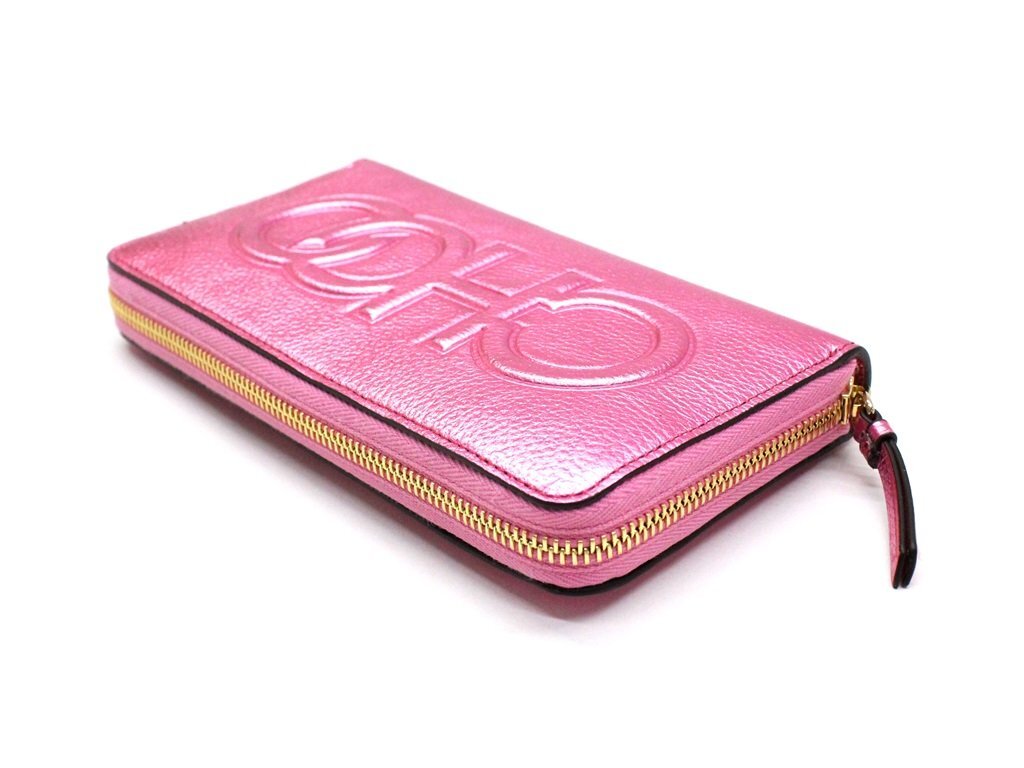 10万新品◆JIMMY CHOOジミーチュウ◆メタリックピンクレザーエンボスロゴラウンドジップ長財布 BETTINA