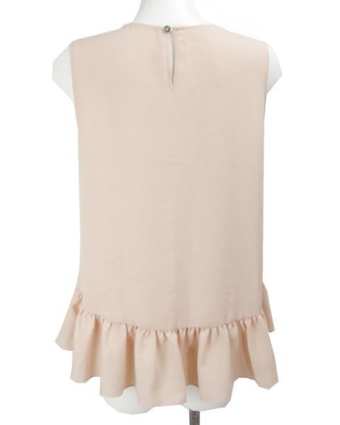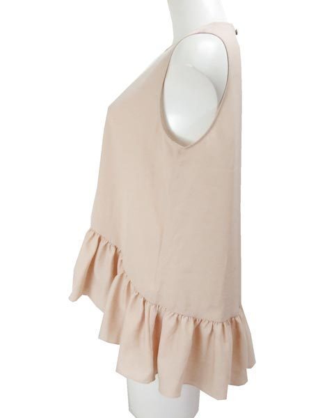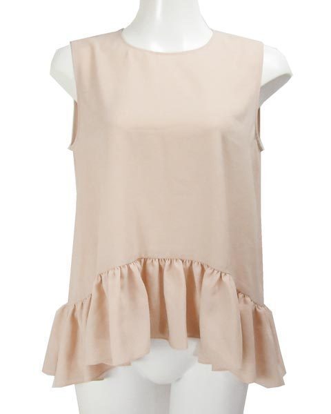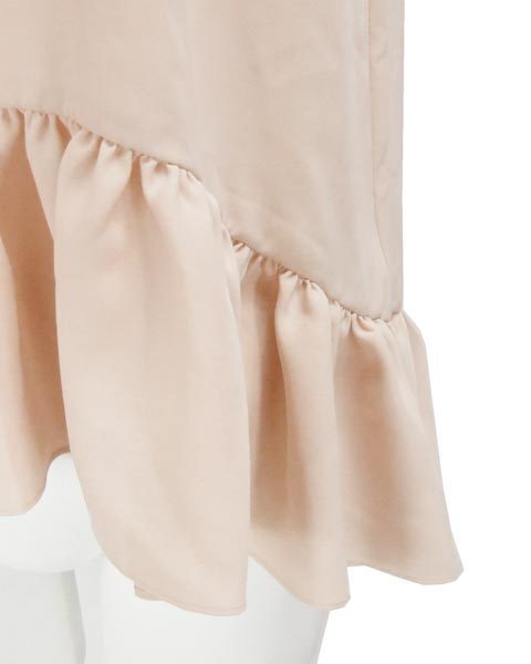 | 裾にたっぷりフリルのフェミニンなブラウス。オレンジ味のピンクベージュで、大人女性の甘目スタイルが楽しめます。パンツスタイルやタイトスカートなどにあわせてのコーディネートはいかがでしょうか。 |