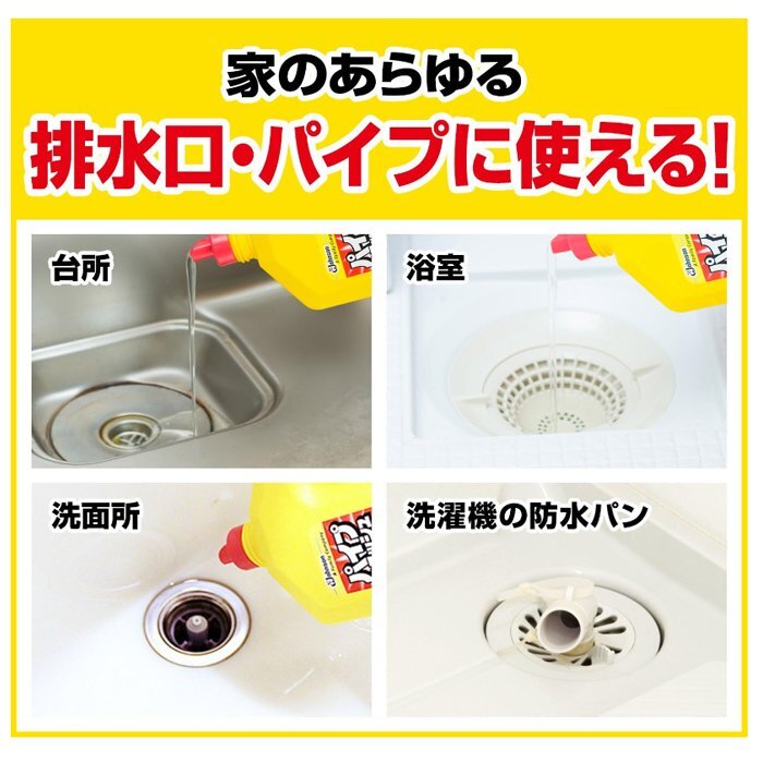 | 商品の説明 | こびりついた汚れを強力分解、つまりもニオイも解消するパイプクリーナー ●配水管・排水口のつまり、ニオイをしっかり解消。 ●髪の毛・ヘドロを強力分解し、キレイにします。 ●少ない少量でも粘度が高い為、汚れに粘着しパワフル洗浄。 ●家のあらゆる排水口・パイプに使えます。 ●コンパクトサイズで、使いやすく簡単にかけられます。 ※液が目に入ったら、すぐに水で洗う。 ※必ず換気をよくして使用する。 ※酸性タイプの製品とまぜると有害な塩素ガスが出て危険です。 ※子供の手にふれないようにする。 |