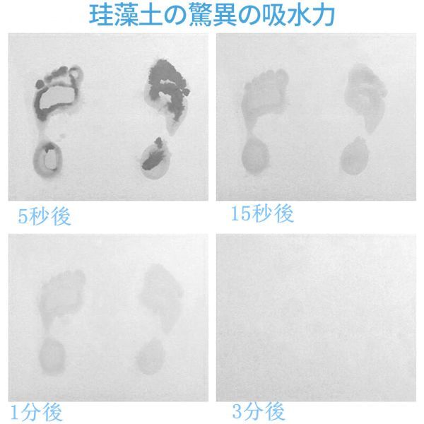 *材質:珪藻土 ▲珪藻土 珪藻土とは、太古の植物性プランクトン(珪藻)が、長年にわたり海底や湖底にちく推積して化石化した天然の鉱物です。天然素材「珪藻土」を使って制作した珪藻土バスマットです。
