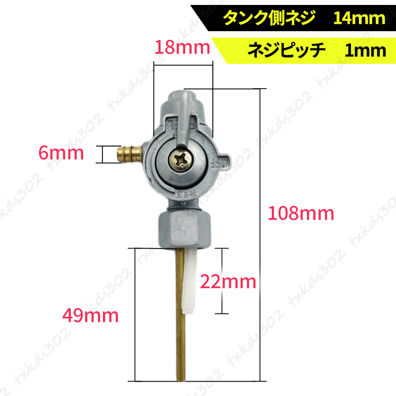 閲覧いただきありがとうございます。 ●YAMAHA用 フューエルコック 互換品です。 汎用品・置換燃料弁ペッタスイッチアセンブリになります。 ●純正タイプ 修理、予備パーツとして。 サイズや形状等が合えば他の車種にも取付することができます。 ●バイクの燃料漏れなどの症状に ・燃費が悪い ・バイク下に液体漏れがみられる ・走行中にガソリンの匂いがする こういった時は「燃料コックが破損」の可能性が高いです。 走行不良になる恐れがありますので交換をお勧めします。 【適合機種】 ヤマハ タンク側適合ネジ 14mm ネジピッチ1mm ・GT50/GT80・GR50/GR80 ・FT50・JT60・FT1 ・YG1・JT1・ミニトレ 他 ●経年劣化による故障や破損を防止するため 長期間保管したバイクのガソリンタンクは、劣化したガソリンでサビが発生しています。 サビ取りだけでなく付属するコック類の定期的な部品交換もおススメします。 全国送料無料 お手軽配送ゆうパケット 発送日は月・水・金曜日 到着目安は 約3~5日でポスト投函で完了となります。 |