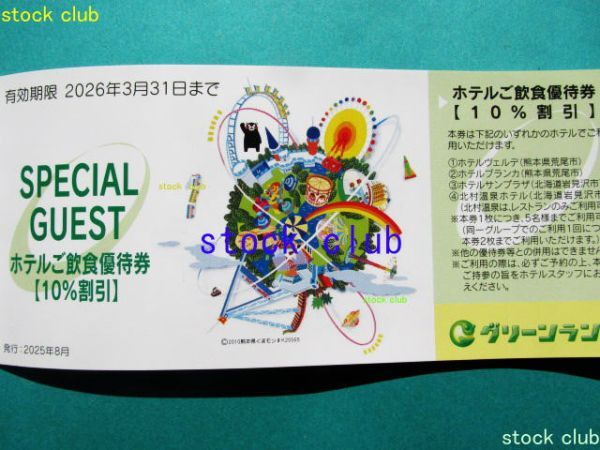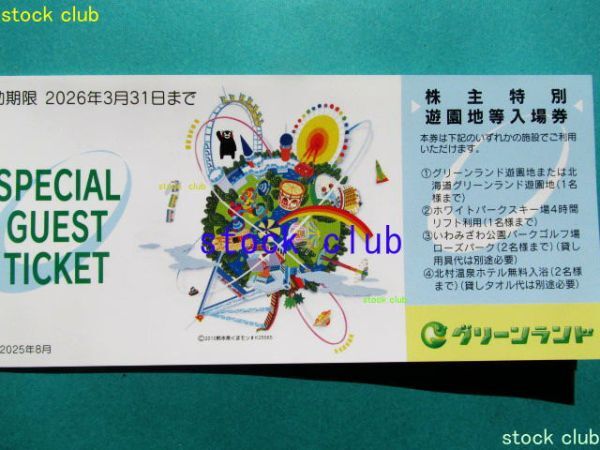 グリーンランド株主優待券遊園地等入場券2枚ホテル飲食優待券2枚計4枚1冊です。