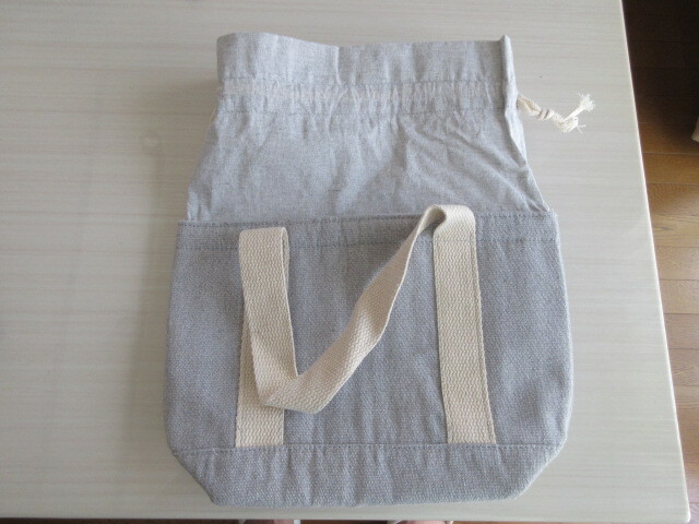 保冷ト-トはデニム地で、500mlペットボトルが4本入ります。上部がひもで巾着状に
