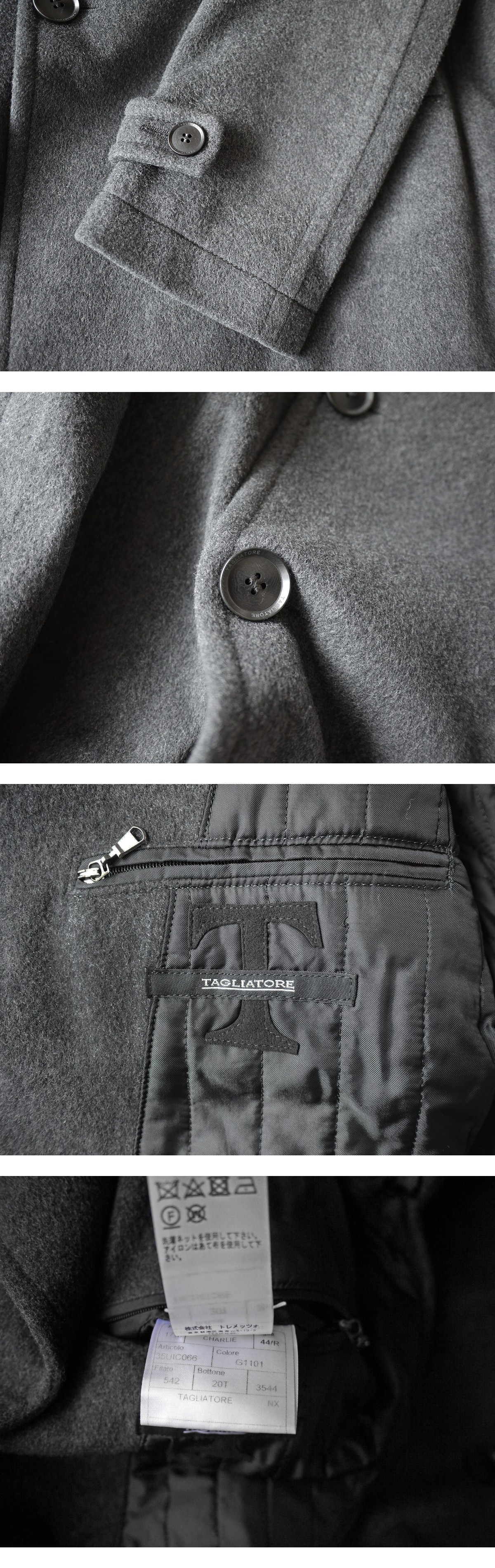 タリアトーレのウールメルトンダブルブレストコートでございます。TAGLIATOREはバーニーズや伊勢丹等で取り扱われる、クラシックなエレガンスを保ちながらモダンな雰囲気を持ち合わせた、世界中のファッショニスタに長く愛されるサルトリアブランドです。