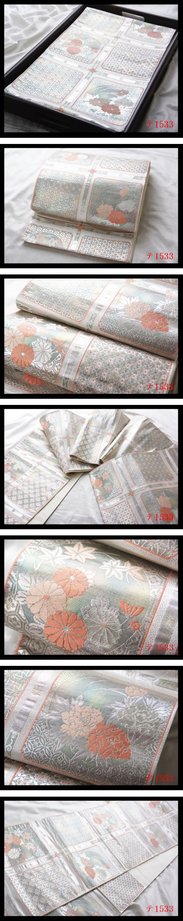 中々上手く撮影出来ないですが、現物は画像以上に、帯の色彩、質感・柄行きなど大変美しい高級品です 職人の技が光る逸品です。 大胆なデザイン★職人独自巧み技 精緻な意匠表現重厚感際立つ美術帯の作品 ★職人の感性と細やかな巧み技★織細な技術とで綾なされた逸品★きめ細かな織が立体感、見る角度によって色んな表情、 織の創作性に富んだ意匠センスが魅力的細緻極まる織り味で表現された豪華な高級感に満ち溢れた日本情緒が匂い立つ意匠の格調高い帯姿を纏う帯です。 優美な意匠はとりわけ華麗な和の真髄を表し 非常に洗練された紋を取り入れた意匠は見る者を圧倒し、ひと際華やかで美しい、堂々とした存在感が漂います。 地色の美しさもまた格別です。文様に使われている様々な色糸も、それぞれに色そのものが上品で美しく、 見ていても飽きないほどうっとりするような洗練された色柄が秀逸です。 繊細な大変上質な高級織物の風合いの良さが息づいた日本独自の古典伝統美 とても綺麗な色い格調超高い★高級帯 お好きな方・お探しでした方は是非この機会にご検討ください。 優美な意匠があしらわれた袋帯です 吉祥の気配漂う意匠をお楽しみください、 かっこよくエレガントな雰囲気も期待できます 高価な高級袋帯はこれより低価で出品する事まずございません、早い者勝ち 同じお品物は二度と出回らない限定の出品で御座いますのでお見逃し無く. 他でも販売していますので、予告なく出品を取り消す場合がございます。 何卒ご了承ください。 注意事項 ーーーーーーーーーーーーーーーーー 中古品にご理解のある方のみ入札をお願いします。 中古品である事を御理解下さい お着物や帯の生地などの伸縮性のため、サイズに若干の誤差がある場合がございます。御了承下さい。 トラブルを防ぎ、商品の状態・判断し易いため 弊社は努力して、色々角度から丁寧に商品撮影しており 商品写真をよくご覧頂き御自身の責任を持って 商品の状態・慎重に判断して入札をお願い致します ノークレーム・ノーリターンでお願いします 他でも販売していますので、予告なく出品を取り消す場合がございます。何卒ご了承ください。 ★1つ1つ実際の商品を撮影し 出来る限り同じ発色に近づけるよう撮影しておりますが、撮影環境、フラッシュを使用している場合があります、 ディスプレイ等の関係で、実物の色と多少異なる場合がございますのでご了承下さいませ 商品画像は撮影後に画像の編集は一切行っておりません。 ※商品は画像の物が全てです。 お客様ご使用のブラウザやパソコンのモニター環境などによっては、多少色合いなどが実物の色と異なって見える場合がございます。 画像色の淡濃が実物の色と多少異なる場合もございますので、予めご了承いただけますようお願い申し上げます。 未使用のお品に関しましても、あくまで一度人の手に渡った品ですので、完璧なものをお望みの方は入札をお控え下さい。 トラブルを防ぎ、写真、商品説明をよく読みになり、神経質な方のご入札はご遠慮ください 色やイメージ違い等での返品・交換はお受けできません イメージと違う等のクレームは一切お受け出来ませんのでご理解ください。 理解できない方、説明文・画像等で判断つかない方、 同意できない方大変神経質な方は入札しないで下さい。 当店からの説明文・画像等をご納得頂いた上でノークレーム、ノーリターンを厳守できる方のみでご入札お願いします オークションの為、原則ノークレーム・ノーリターンでお願い致します。 ただし、ご到着の品がご落札の品と違った場合や寸法などが商品説明と著しく違う場合は、お手数ですが商品到着後、 3天以内に連絡掲示板にてご連絡ください。誠意を持って対応させていただきます (商品到着後3天を過ぎた場合は対応いたしかねます)。 商品到着日に関してですが、商品到着日指定のご連絡がない場合、商品発送日の翌日(九州)または翌々日(北海道・本州・四国・沖縄)を到着日とさせていただきます。 予めご了承ください。 当方商品は中古として取り扱っております。 【新品出品するの場合明記致します】 経年に伴うシミ汚れ等のチェックには注意を払っておりますが、見落としがある場合もございますし、 ★箪笥に入っておりました着物や帯なので畳みシワや匂いがあるものもございます。 未使用のお品に関しましても、あくまで一度人の手に渡った品ですので、 完璧なものをお望みの方は入札をお控え下さい。 瑕疵の状態に関しましては、個々の見解の違いがありますのでご了承ください。 細かい瑕疵等が画像で確認できない場合がございます。 ご入札ご落札後は瑕疵の状態についての保証はいたしかねます。 実物との色合い誤差を無くす為、極力丁寧な撮影を心がけておりますが、パソコン上で表示される色は各モニターの性能や設定により異なる場合がございます。 予めご理解の程よろしくお願いいたします。 お客様画像を