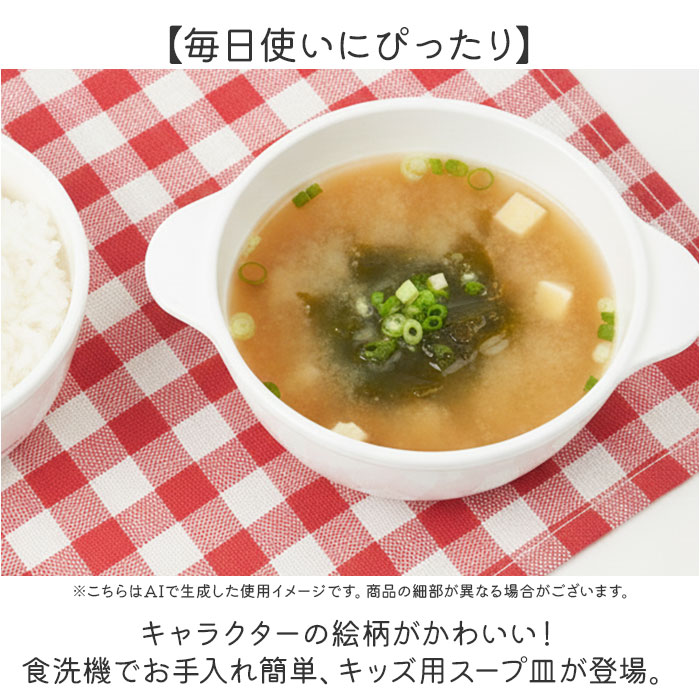 | 商品説明 | ・・【毎日使いにぴったり】 ・キャラクターの絵柄がかわいい!食洗機でお手入れ簡単、キッズ向けスープ皿が登場。 ・【汁物に最適】 ・スープやお味噌汁にぴったりの形状で程よい容量の300mlだから、毎日の食卓で大活躍♪ ・【持ち手付き】 ・取っ手が付いているから小さな手でも持ちやすく、自分で運ぶ練習にもぴったり! ・【お手入れ楽ちん】 ・食洗機と電子レンジ対応だから、温め直しも後片付けもラクラクで忙しい日も安心◎(※耐熱温度140度。500W×2分以内) ・【安心の国内生産】 ・ BPAフリーで日本製。お子様に人気のキャラクター柄がかわいい!毎日の食卓が楽しくなるアイテム。 ・【スタッキング収納】 ・同シリーズのコップ・茶碗・スープ皿・小皿・ランチ皿でスタッキング収納可能♪ |