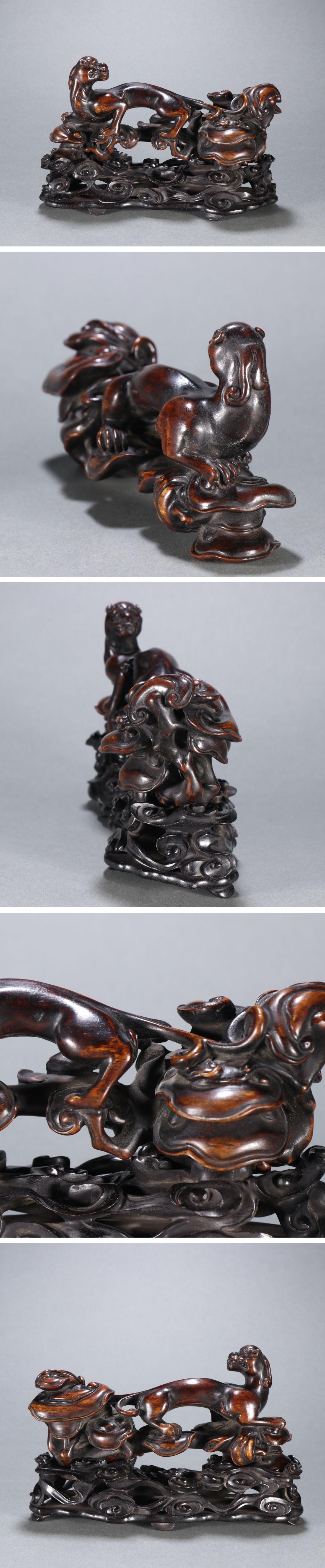 【清】関西某オークション購入 中国伝来 清時代物 黄花梨 龍紋案頭置物 当時物 時代コレクション7L12-AM15