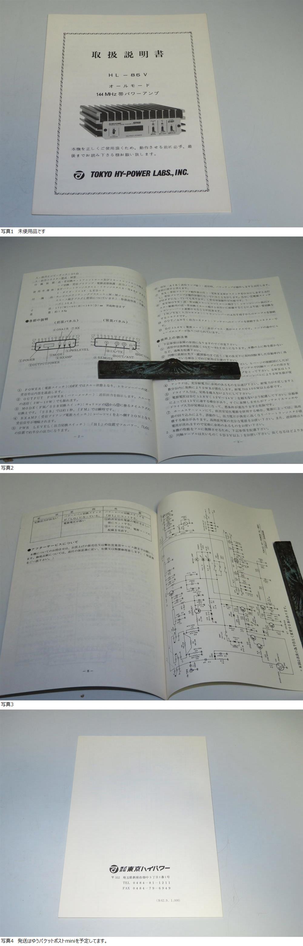 ※◎【本文の解説をよく読まれてご検討ねがいます。】 誠に申し訳御座いませんが24時以内に連絡、ご入金処理のできる方、および商品受領確認後に早急に取引ナビにて「受取連絡」のできる方のみ入札願います。 評価が新規の入札者様は入札の際、質問等で予め連絡ください。事前連絡がない場合はこちらで入札の取消(削除)を実施しますことを予めご了承願います。 転売業者の方は落札後「受取処理」の遅延、遅滞の発生率が極めて高いので入札をご遠慮願います。※転売業者と判明した時点で入札を取り消す場合があります。 商品名 : ★ 東京ハイパワー HL-85V 144MHZ帯 オールモード・パワーアンプ 取扱説明書 マニュアル 【未使用品】★ 付属品 :なし。 商品詳細 :既に廃業した東京ハイパワーのモデル:「HL-85V」144MHZ帯オールモード・パワーアンプ 取扱説明書です。 未使用品ですが経年保管により全体的に変色、シミ、経年劣化があります。 乱丁、書き込み、破れ等はございません。見るには問題ございません。 外観は画像にてご確認ください。 現状でのお渡しとなります。 以上ご興味のある方説明文をよく読まれた上、入札頂けます様お願い申し上げます。 説明文の理解力の無い方、思い込みの激しい方はくれぐれも入札しないで下さい。 入札終了まじかのご質問もお答えできませんのでご了承下さい。 到着後の使用方法等などについてサポートは出来ませんので予めご了承ねがいます。 入札の取り消し、キャンセルは出来ませんのでお間違えないようにお願致します。 以上宜しくお願いします。 発送は日本郵便(株)のゆうパケットポストmini(匿名・追跡・補償有り)を予定してます。 |