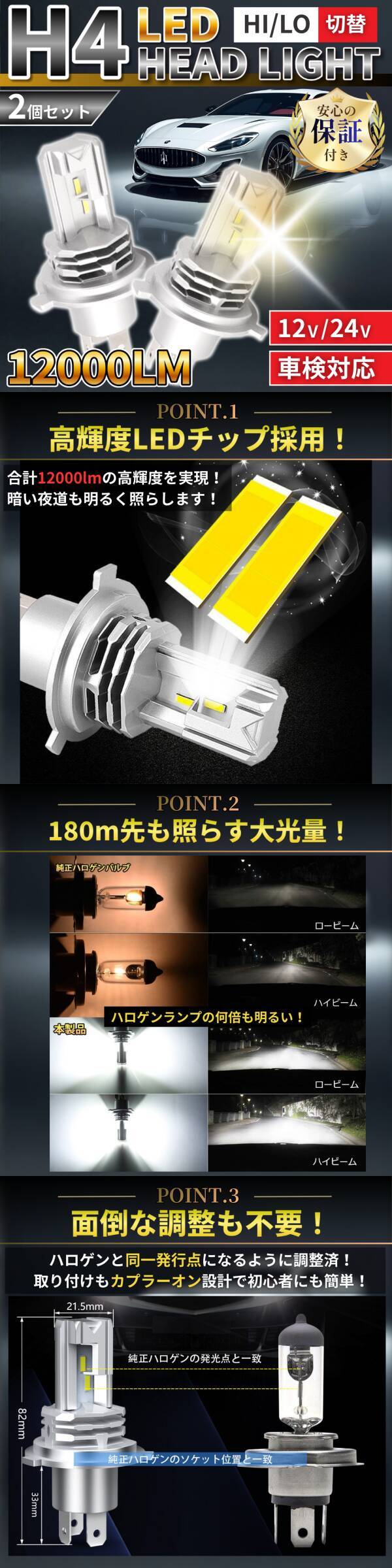 H4 LED ヘッドライト 6500K 車検対応 Hi/Lo 防水 バルブ ファンレス 爆光 2個セット トヨタ 日産ホワイト 白