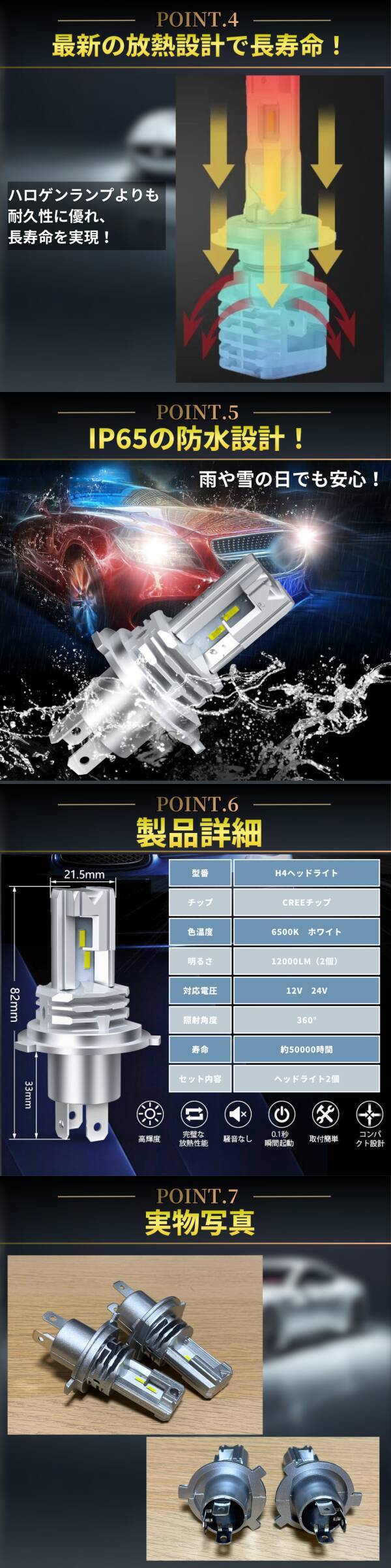 H4 LED ヘッドライト 6500K 車検対応 Hi/Lo 防水 バルブ ファンレス 爆光 2個セット トヨタ 日産ホワイト 白 [浏览原始页面]