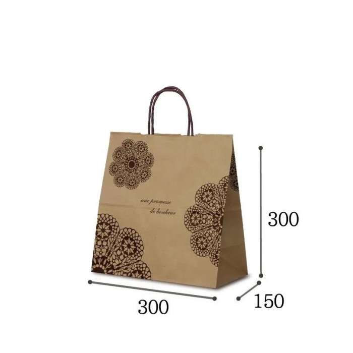 | 業務向けの手提袋です。女性に人気のレースィシリーズです。ガーリーな雑貨や食品に相性が良く、マチ広でケーキやクッキーなどの箱物にも対応。 |
