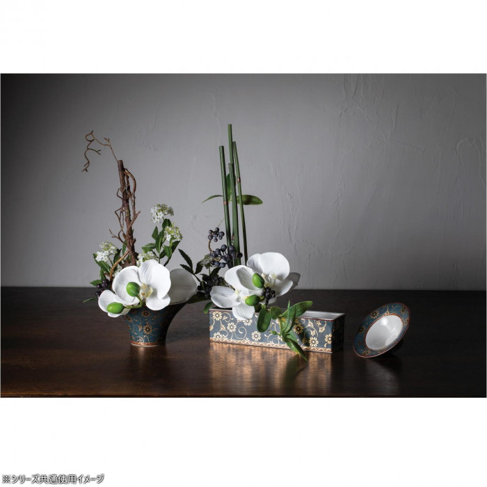 | 伝統工芸品である九谷焼と花の優美なコラボレーションは見るものを魅了します。 |