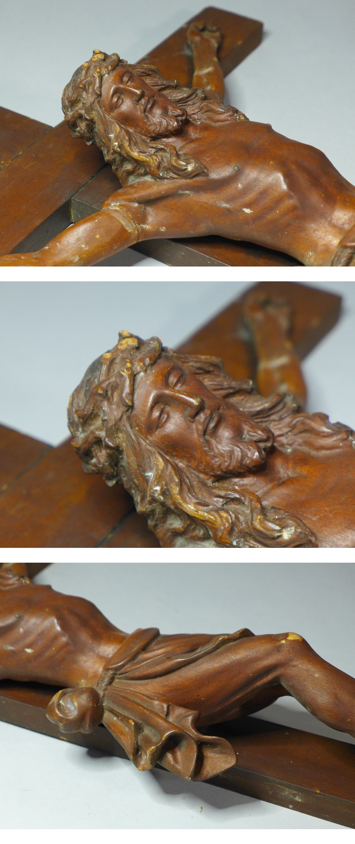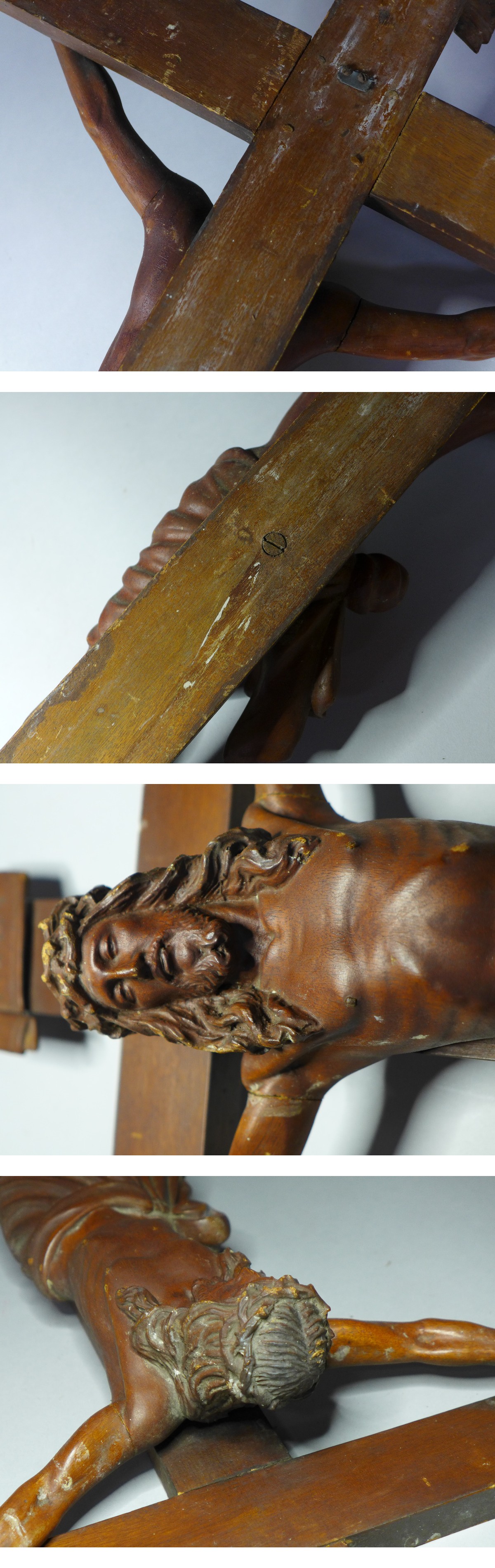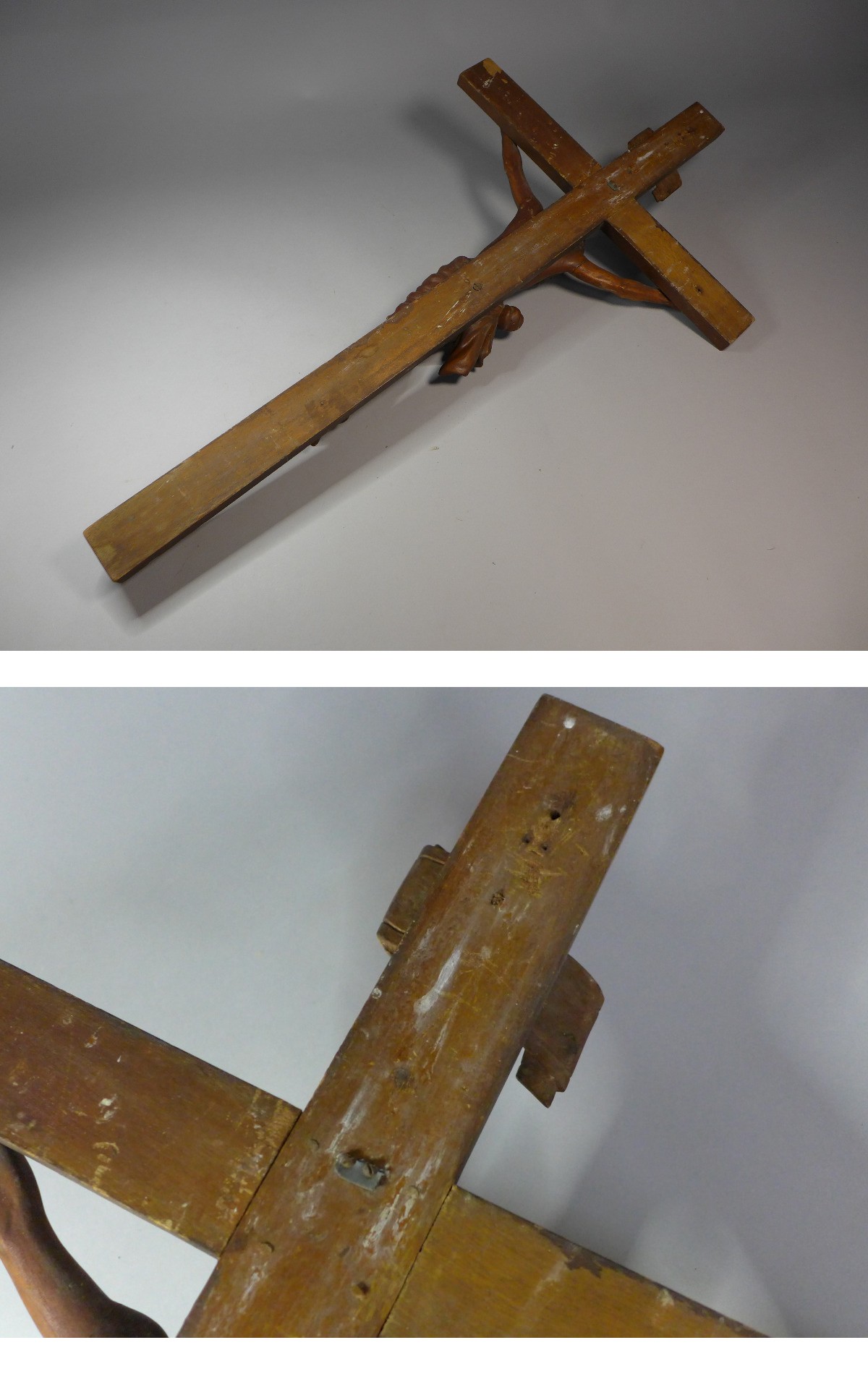 十字架のサイズ:約91・3x48・5cm。キリスト本体:約46cm。キリスト本体は一木造ですが、腕部分は違います。大変美しいキリスト像です。経年感少々。両手の釘は抜けております。現状品になりますので写真をご確認の上御入札お待ちしています。状態は画像参照でお願いします。★★★★★★★★★★★★★★★★★★★★★★★★★最近、悪質な入札者が多く非常に迷惑をしております。新規IDや「非常に悪い・悪い」の評価の多い方の入札はお断りさせて頂きます。 仮に入札があった場合でも、発見次第入札を削除させて頂く場合がございます。