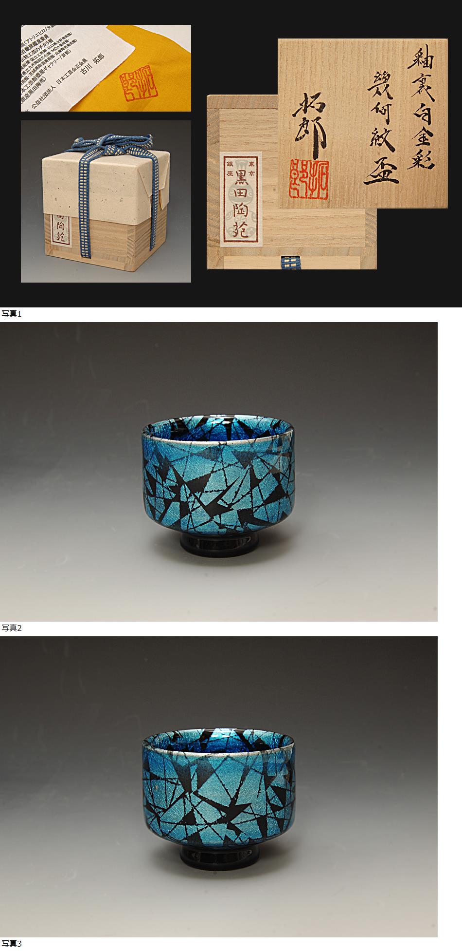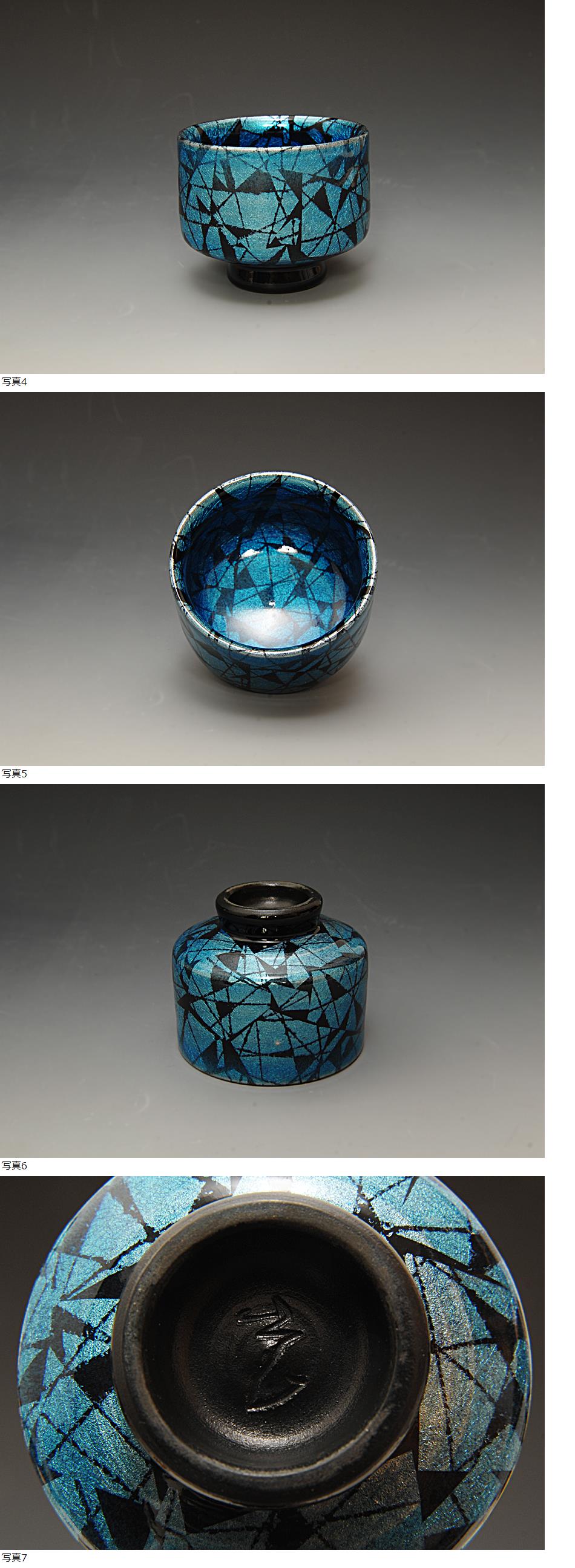 星庵厳選名品企画 個展作 古川拓郎 釉裏白金彩幾何紋盃 共箱
