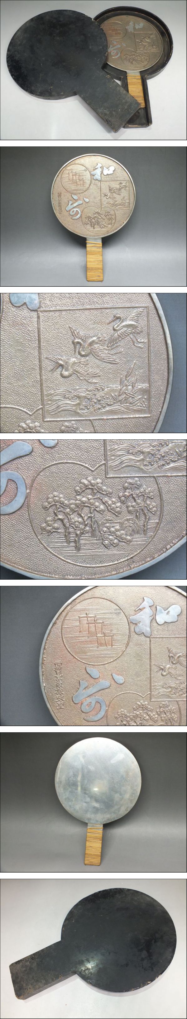 銅鏡 和鏡 西村豊後掾政重 古鏡 骨董 アンティーク 江戸時代 手鏡 時代物 ケース付き | |||
