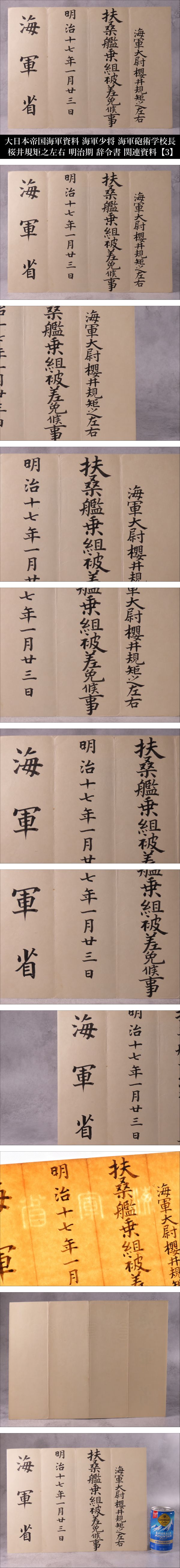 【ONE'S】大日本帝国海軍資料 海軍少佐 海軍砲術学校長 桜井規矩之左右 明治期 辞令書 関連資料 明治十七年一月二三日 【3】 | |||