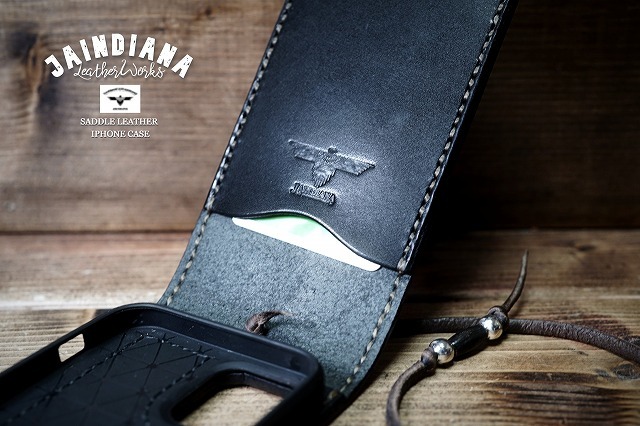 | iPhone13ケース 手縫い サドルレザー ブラックA (iPhone13pro・mini仕様での製作も可) | ||||