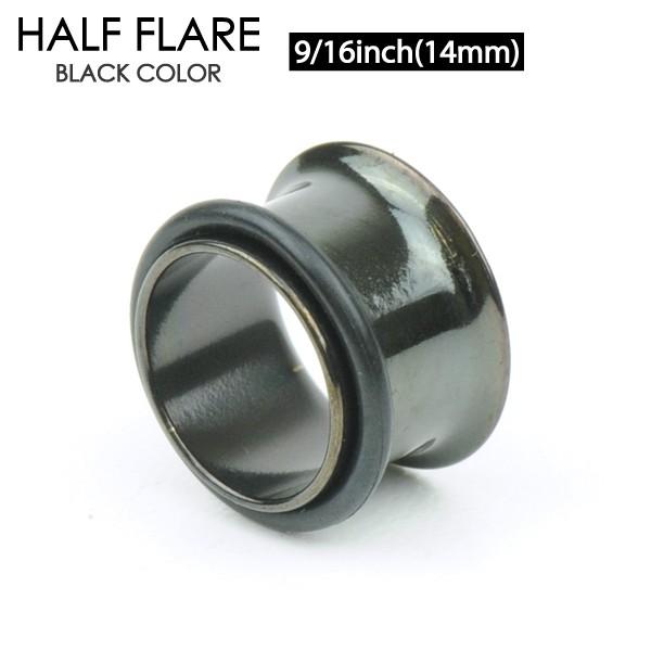ハーフフレア ブラックカラー 9/16インチ(14mm) アイレット サージカルステンレス316L シングルフレア ボディーピアス BLACK ロブ 9/16inch