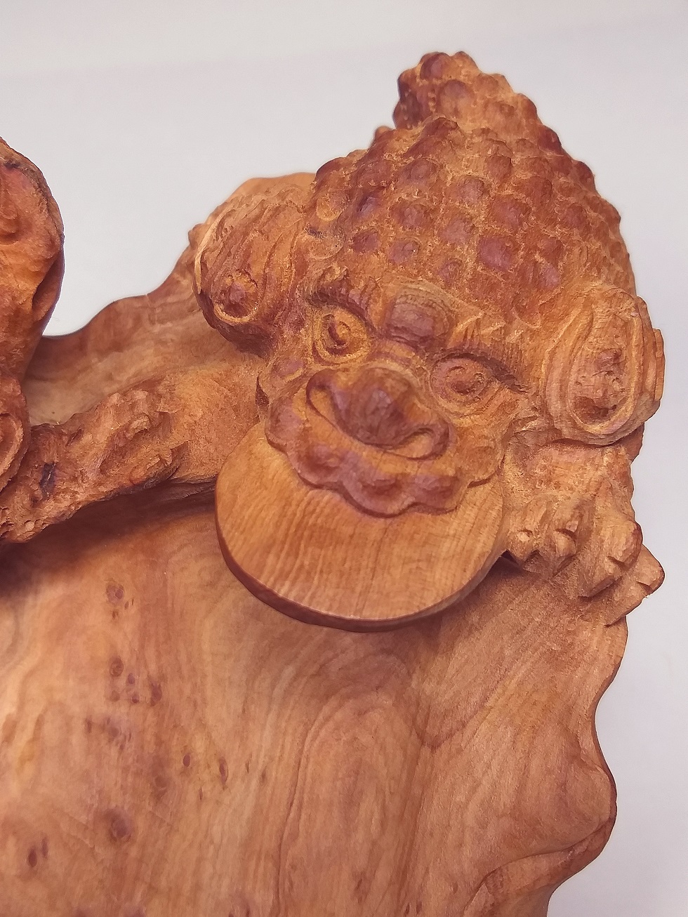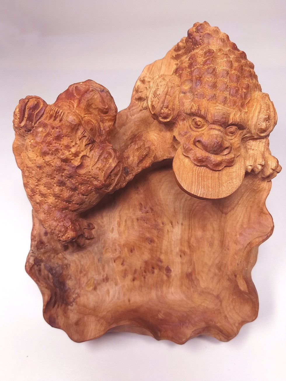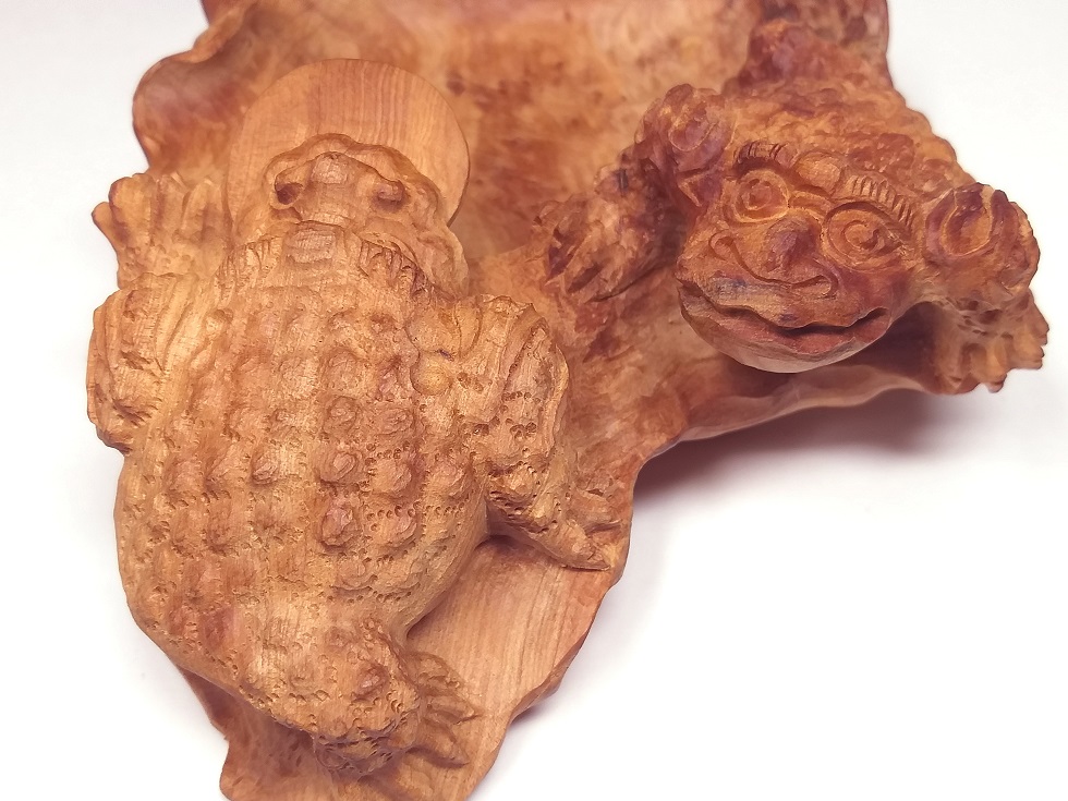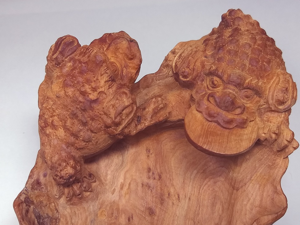 中国の木彫りの工芸美術師(人間国宝)である著名な彫刻家、中国非常に著名な木器彫刻師)である鄭盛寧による彫刻制作の開運名品です!大変素晴らしい “清刀一刀彫” の開運彫刻芸術作品です!