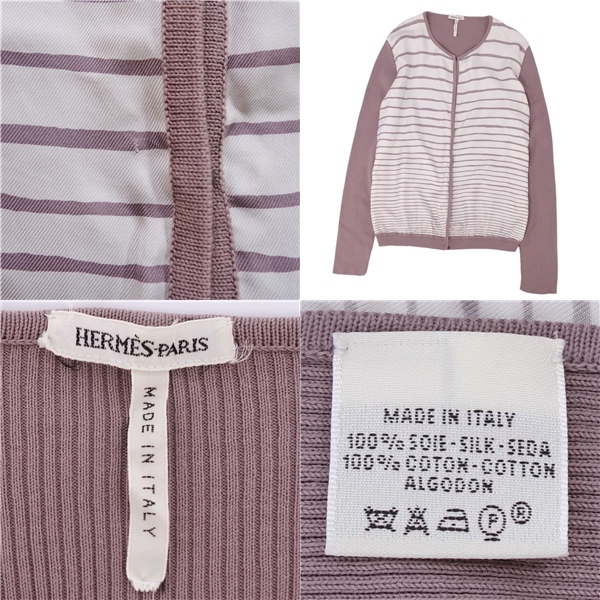 | 美品 エルメス HERMES マルジェラ期 ニット カーディガン ロングスリーブ 長袖 シルク切替 トップス レディース LA |