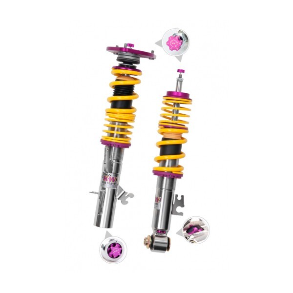 | ■商品説明 | 安定性と快適性をさらに追及した減衰力調整式サスペンション (伸び側のみ) KW Version-2 「inox-line」 車高調キットは、単なるローダウンだけでなく、ドライバーの好みに合わせて乗り味のセッティングが可能です。こだわりのステンレス製ストラットや耐久性の高いバルブ、伸び側の減衰力が16段階で調整できるダンパーには、この商品を選ぶ価値があります。 KW Version-2 「inox-line」のダンパーは、伸び側の減衰力が16段階で調整可能です。一般的に伸び側の減衰力は、ハンドリングと乗り心地の良さに影響を与えます。この伸び側の減衰力を調整することで、コーナリング時の不要なロールやピッチングを制御する事が可能になり、操縦性や安定性といった乗り心地を犠牲にすることなくスタイリッシュなフォルムを手に入れることができます。 ほかのKW車高調キットと同様に、ニュルブルクリンク北コース(ノルドシュライフェ)での実走行と、7ポストリグでのシミュレーションによるテストを繰り返して、車種ごとに完全にオリジナルのダンパーを開発しています。KW車高調キットを装着することにより、ダイナミックかつダイレクトなドライビングが可能になります。KW Version-2のダンパーは、ハンドリングと乗り心地に影響を与える伸び側の減衰力のみ調整が可能です。伸び側と縮み側のバルブが独立しているため、伸び側を16段階のどの位置に調整しても、縮み側の減衰力が変わることはありません。 車種によって異なりますが、KWツインチューブダンパーの伸び側バルブはピストンロッド先端に付属の専用ダイヤルを差し込んで調整するか、ピストンロッドの途中に内蔵されたアジャスターを調整することによって減衰力が変化します。時計回りに締め込むことにより減衰力が高くなり、車体の姿勢変化が抑えられます。直進安定性が増し、コーナリングスピードを上げても安定して曲がることができるようになります。また、インチアップをした際など、タイヤ&ホイールに合わせてセッティングを変更することも可能です。 *ネジ式車高調 *純正トップマウント対応 *減衰力調整式 伸び側-16段 縮み側-固定 *車種毎に開発&セッティングした専用設計 *耐久性と強度に優れたステンレスケース「inox-line」を採用※一部車種を除く *シムタイプとは異なるバルブ構造を採用しヘタリに強い |